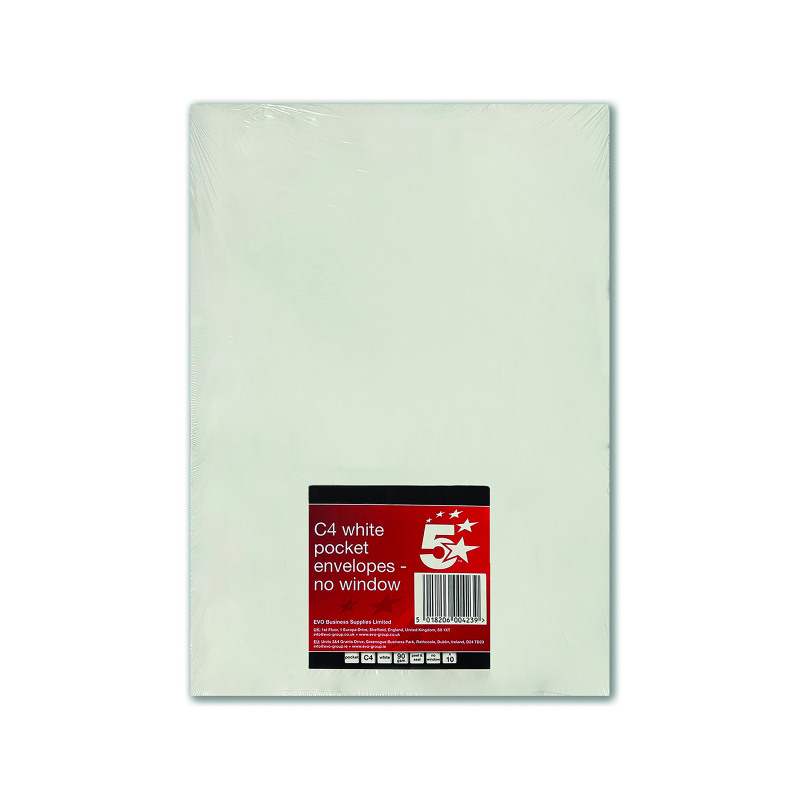 5 Star C4 Envelopes Pocket Peel and Seal 90gsm White (Pack of 10) FS600423
