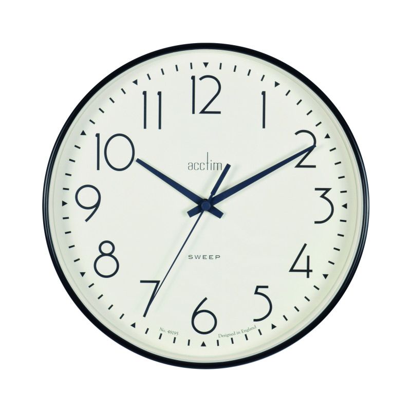 Acctim Earl Wall Clock Non Ticking Sweep Seconds Hand 250mm Diameter Black 22563