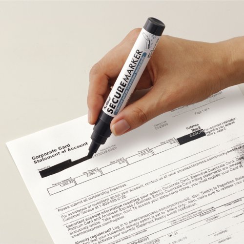 Permanently obscure sensitive information with ease using this specially designed marker. Ideal for office, home, or business use, it features a high-opacity black ink that effectively hides private or confidential data on documents. Whether you're protecting names, addresses, account numbers, or other personal details, this marker ensures that covered information cannot be easily read, scanned, or photocopied. The fast-drying, smear-resistant ink provides reliable coverage on most types of paper, making it perfect for preparing documents for disposal, recycling, or secure handling. A simple and efficient solution for safeguarding privacy and preventing identity theft.