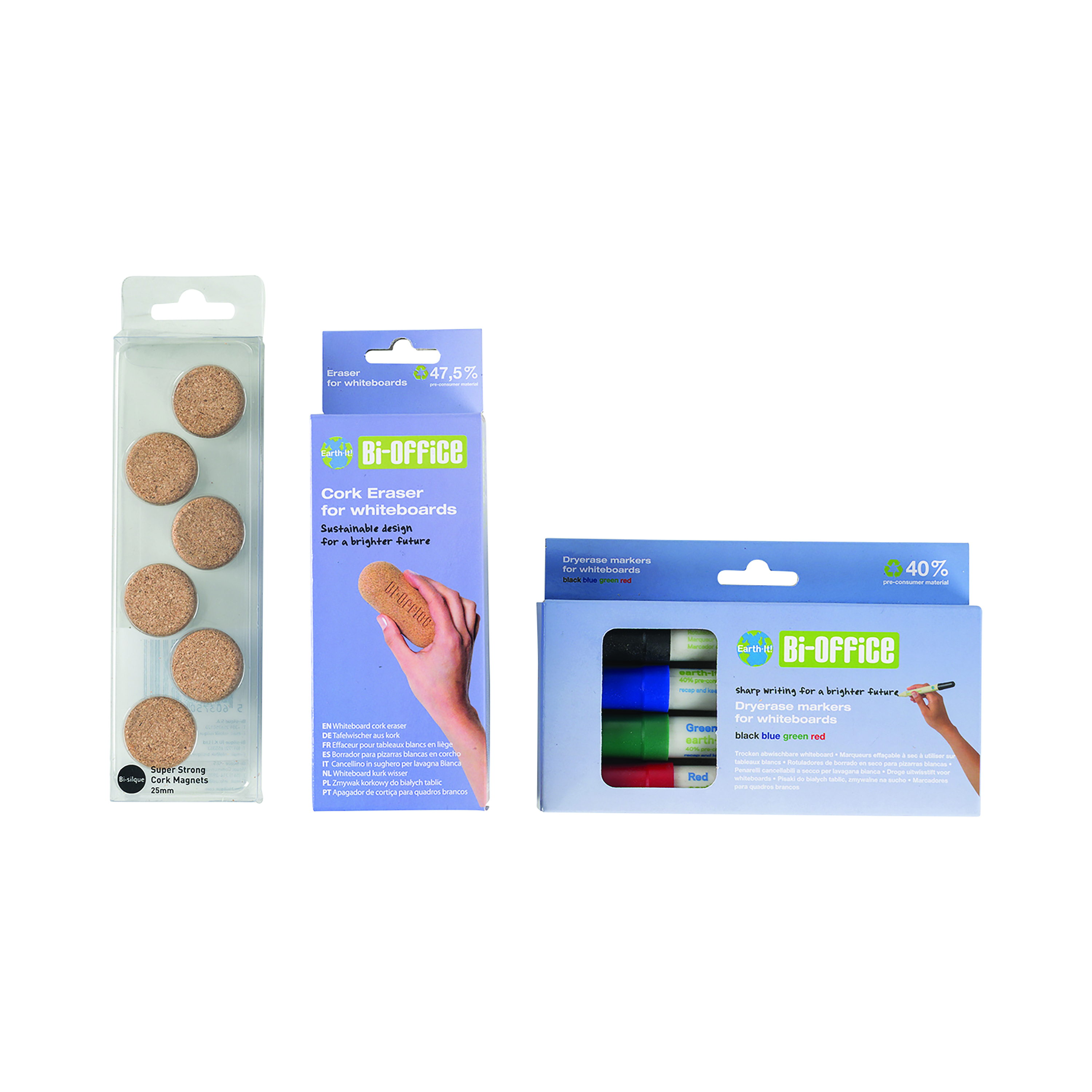 - The eraser and the magnets are made from recycled natural cork, a natural sustainable material