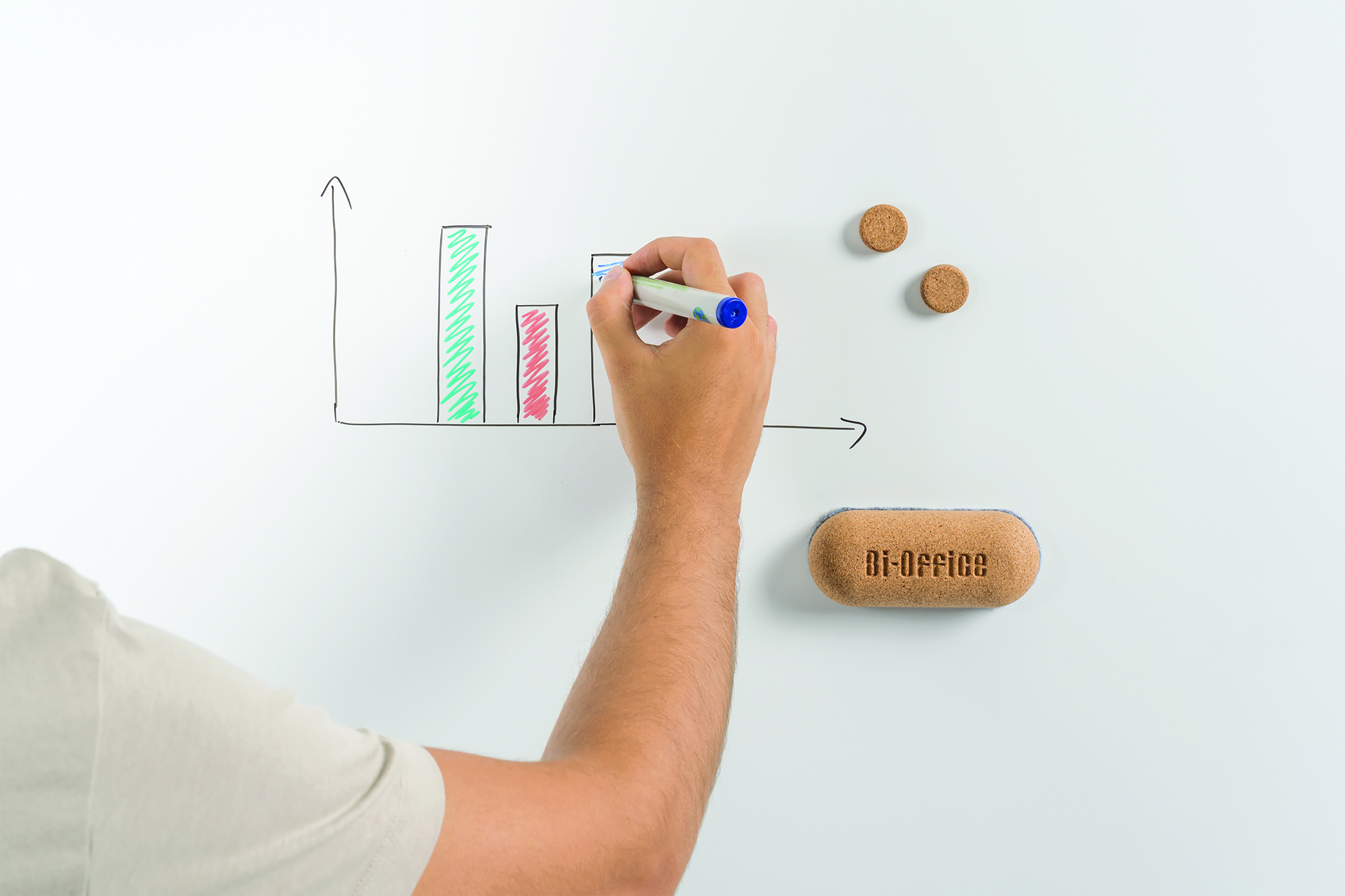 The Bi-Office Earth Magnetic Whiteboard Kit is an all-in-one accessory solution for drywipe magnetic whiteboards. This set includes 4 drywipe bullet tip markers (black, red, blue, and green), 6 cork magnets and a magnetic cork eraser. Use this kit in your organising, planning, or monitoring activities, in the office or at home. This kit, allows you to use dry-erase magnetic whiteboards to their full potential.
