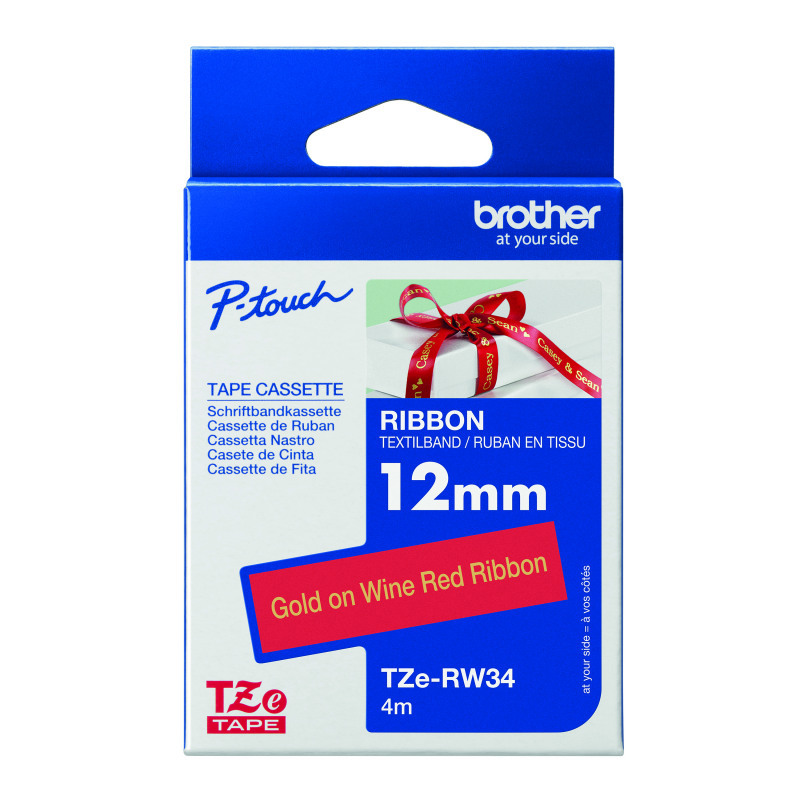 Brother P-Touch TZe Ribbon Tape Cassette 12mm x 4m Gold on Wine Red Tape TZERW34