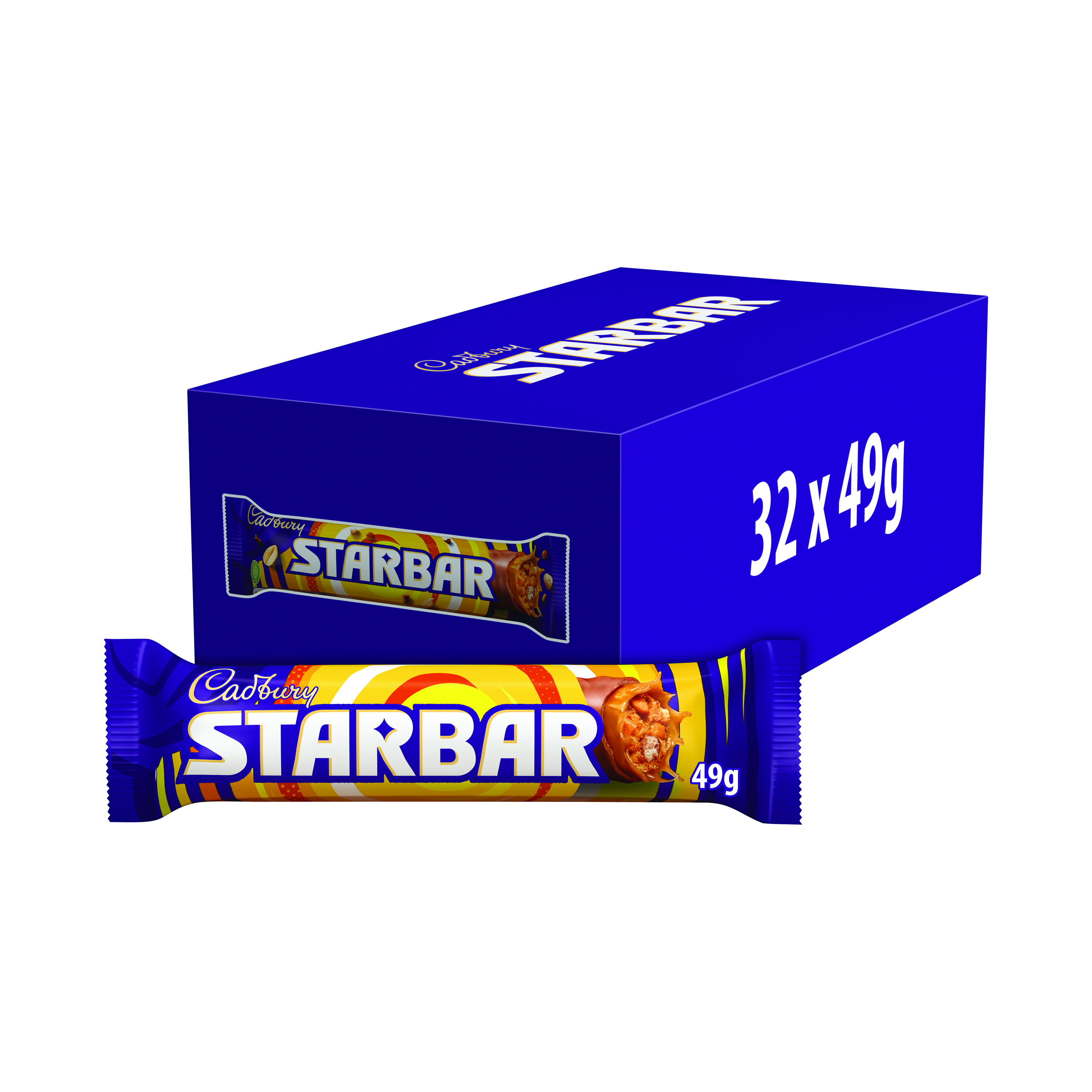 The Cadbury Starbar is bursting with salty peanuts and chewy caramel, all covered in delicious Cadbury milk chocolate. 49g per bar.