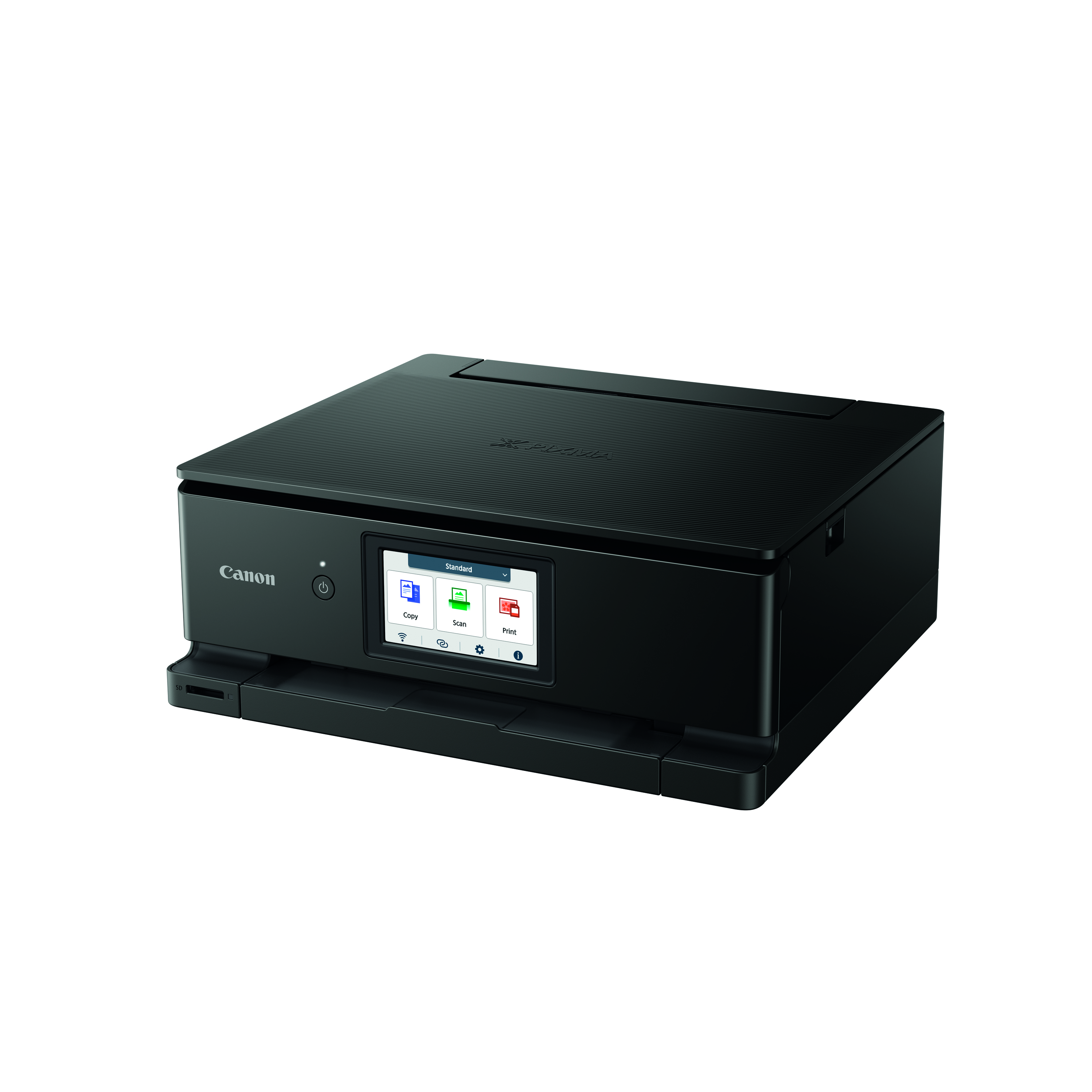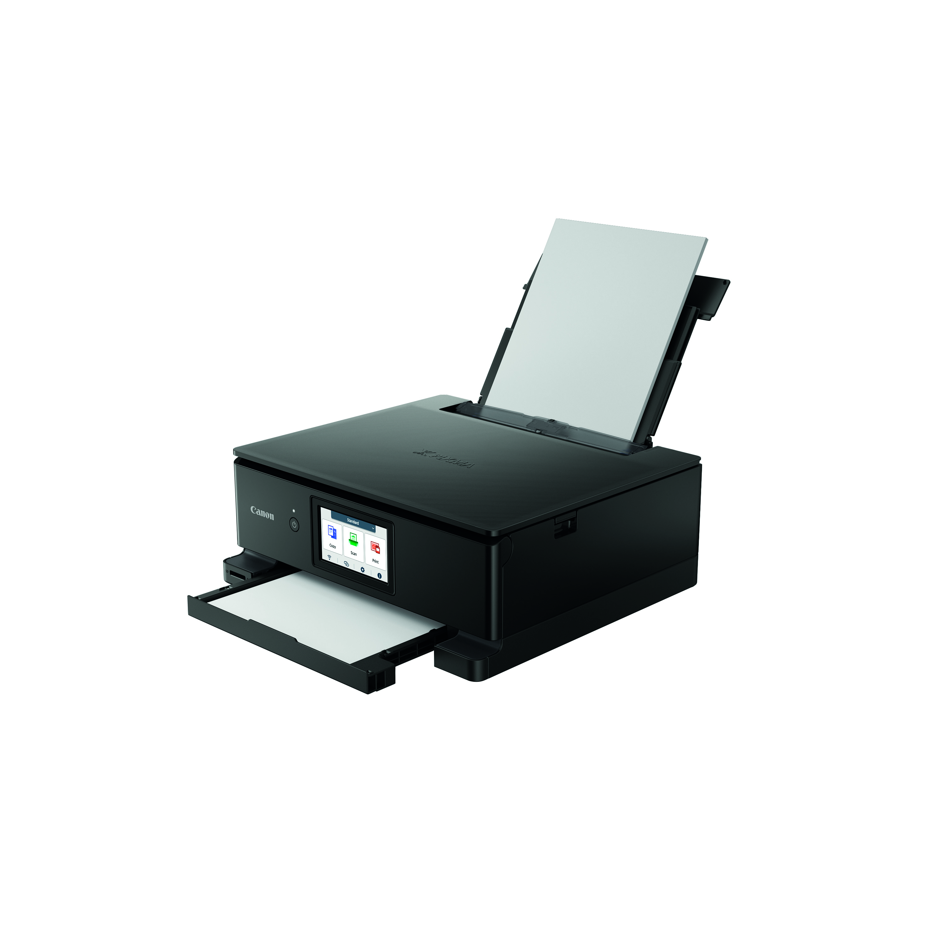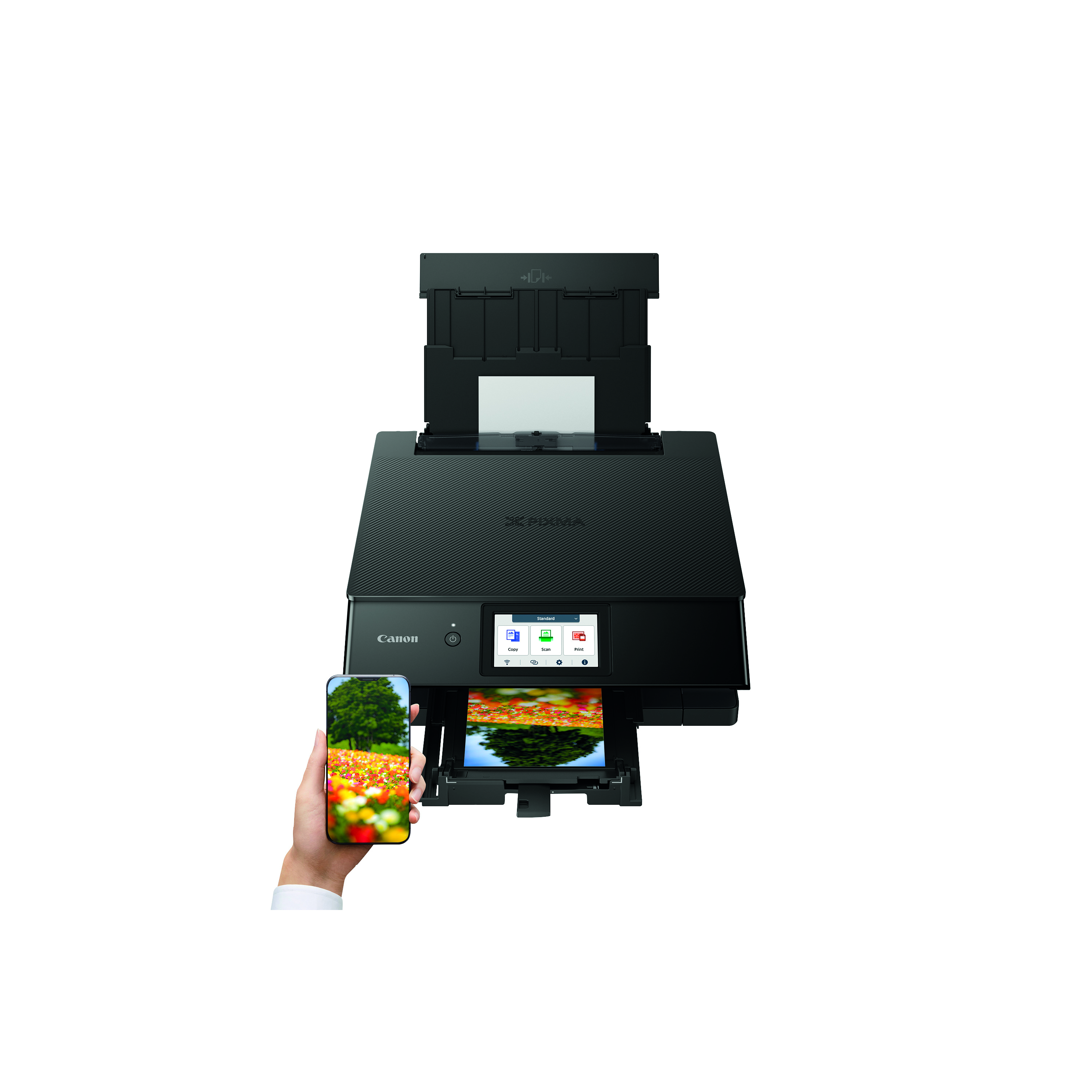 Create crisp documents and vivid photos with this premium home printer, with simple wireless operation. A streamlined Switch UI interface and seamless Wi-Fi set up. The 6-ink printing delivers fast, stunning results for documents, colour photos and more. Canon PIXMA TS8750 is a 3-in1 multi-function printer, offering printing, scanning and copying. Replace only what you need to, with 6 separate ink cartridges, a black pigment ink for sharp documents and five dye inks, including a grey ink for rich colour prints. With a print speed of up to 15.0 ipm (mono), 10.0 ipm (colour). Print resolution up to 4,800 x 1,200 dpi. Auto duplex print (A4, A5, B5, LTR - plain paper). Copy up to 99 multiple copies (max,) and copy zoom of 25 - 400% and fit to page. Rear tray: up to 20 sheets (photo paper), up to 100 sheets (plain paper); Front cassette: up to 100 sheets (plain paper); Multi-purpose tray: 1 printable CD, DVD, or Blue-Ray Disc. With Direct Disc printing. Flatbed (Platen) CIS colour scanner, with optical resolution of 1,400 x 4,800 dpi. Connectivity via Hi-Speed USB, Wi-Fi and Wireless Direct. Mobile connectivity: Canon PRINT app, Easy-PhotoPrint Editor app, Creative Park app. Printer features: Easy-PhotoPrint Editor Software, PIXMA Cloud Link, Canon Print Service Plugin and Mopria (Android), Apple AirPrint, Wireless Direct, PosterArtist Web. Compatible with a wide selection of SD memory cards. All operated via a 10.8cm tilting screen. Supplied with 6 set-up ink tanks.