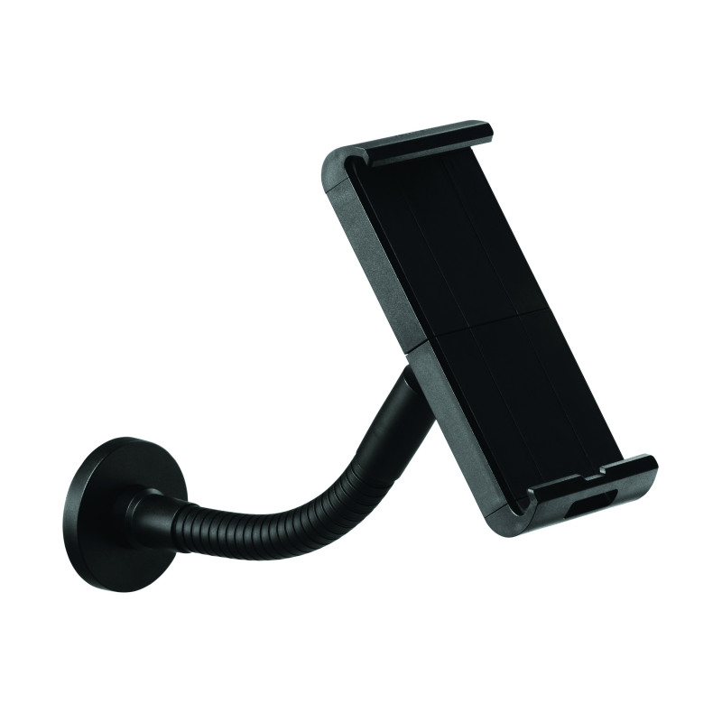 The Durable Tablet Holder TOUGH is a versatile and secure solution for mounting tablets in various environments. Designed for both wall and table use it is made from flame-retardant materials for enhanced safety. The holder features a flexible ball joint, swivel arm, and gooseneck, allowing for ergonomic, infinitely adjustable reading angles and 360-degree rotation.