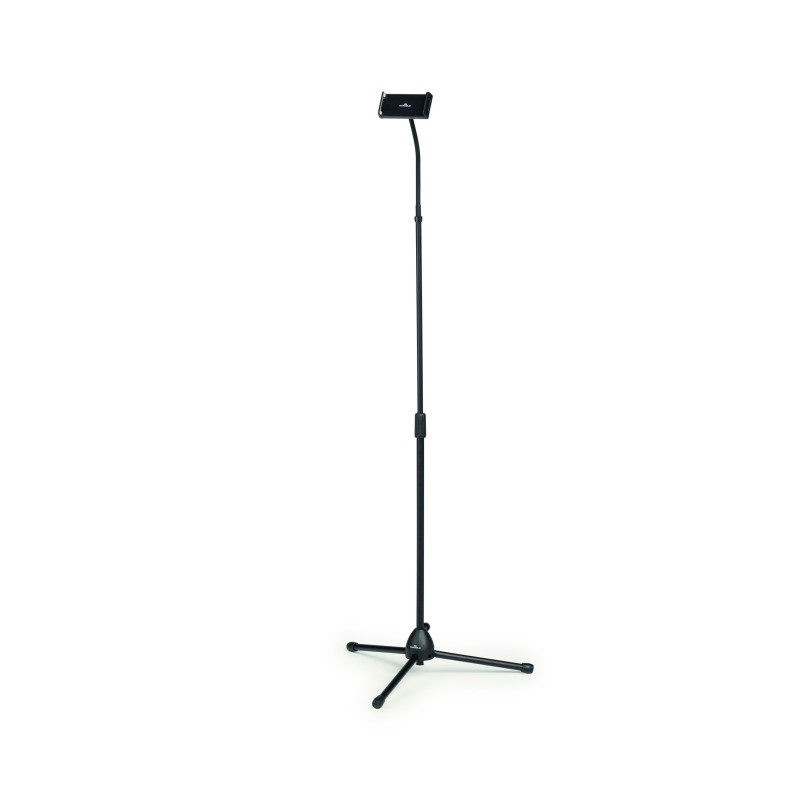 Durable Gooseneck floor stand with tablet and phone holder, featuring a flexible arm and 360 degree ball joint. Suitable for all phones and tablets including iPhone and iPad from 4.7-13 inches (up to 800g). The telescopic stand can be adjusted to any height up to 1.7m. Can be folded down to 70cm in the included carrying bag, the tripod is mobile and flexible to use. The ergonomic designs feature a flexible gooseneck which allows an individual and stepless height and viewing angle adjustment. Non-slip pads in the clamp keep your device secure and protect against scratches. Easily charge your devices through the integrated cable management outlet in the clamp. Can be adjusted to any angle through 360 degree rotation.