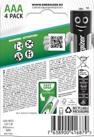 Energizer AAA Rechargeable Battery Advanced NiMH Capacity 700mAh LR03 1.2V (Pack 4) - E300624405