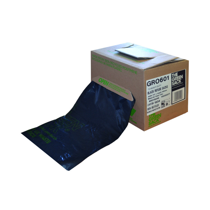 The Green Sack refuse bag is a black, heavy duty refuse sack made from 100% recycled material in a handy dispenser box. Ideal for janitorial and office use, or to have around the home, these black sacks are incredibly popular and are durable, strong and designed to withstand heavy use. Ideally suited for heavier items, they make a versatile and cost effective refuse removal solution suitable for frequent use.