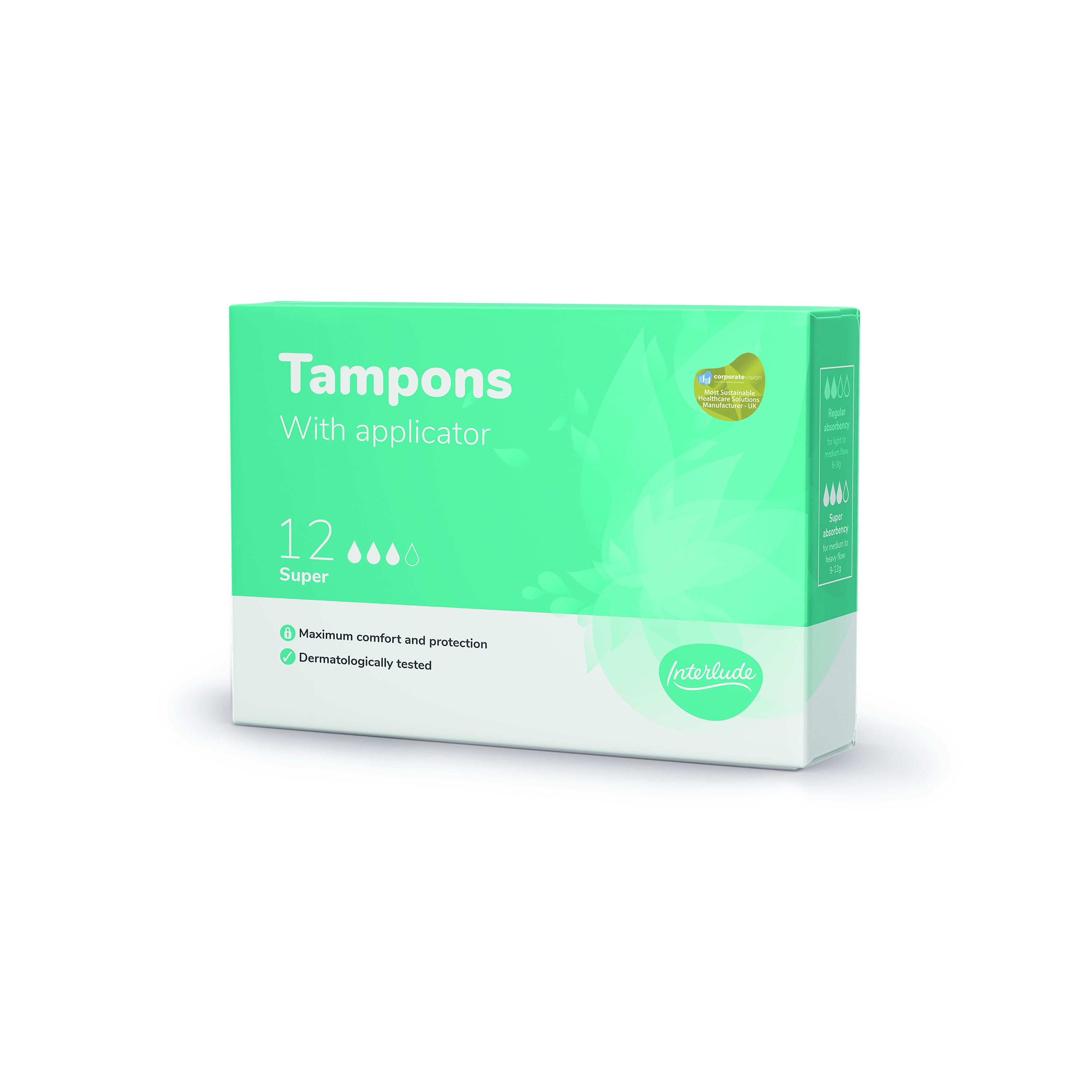 Interlude period care provides high performance, effective protection at exceptional value. In line with the leading brands, we have developed Interlude with an uncompromising commitment to ultimate protection, security and comfort. Developed to provide all round comfort and protections for up to 8 hours. Dermatologically tested. This super pack contains 12 applicator tampons super per box. 12 packs supplied.