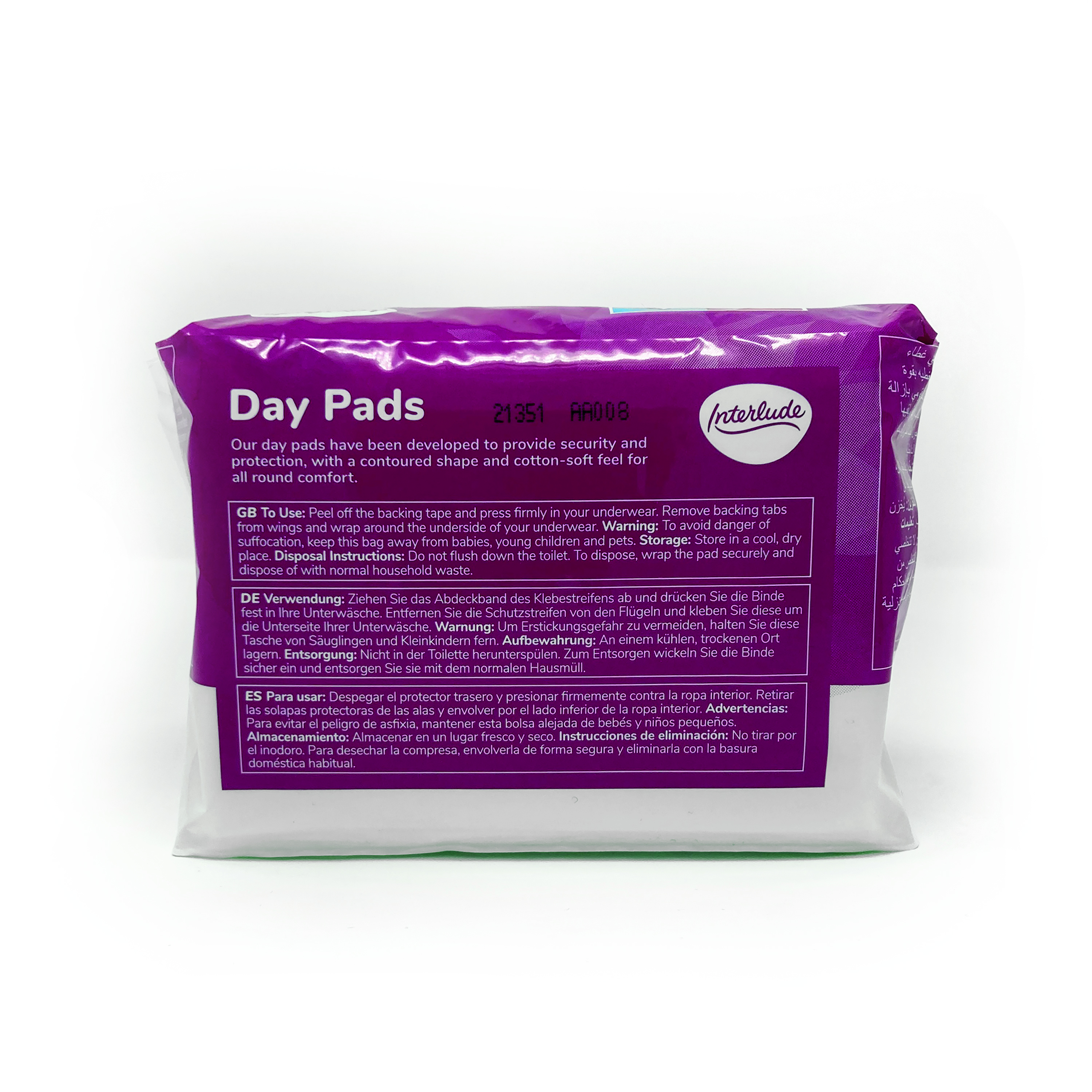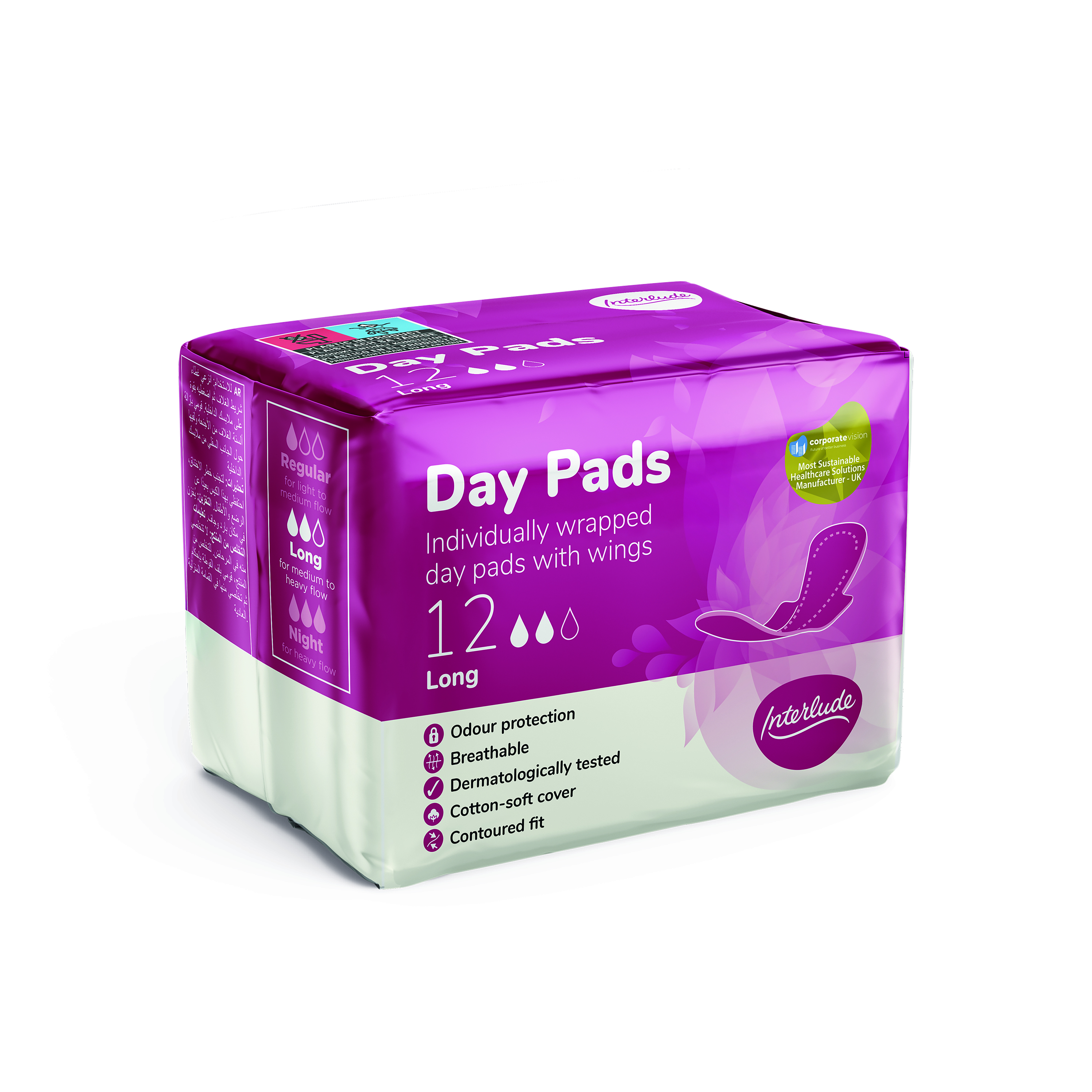Interlude period care provides high performance, effective protection at exceptional value. In line with the leading brands, we have developed Interlude with an uncompromising commitment to ultimate protection, security and comfort. Ultra pads, long have a cotton-soft cover for maximum comfort. These breathable pads, with odour protection are specially designed to be longer with a contoured fit with wings for use any time. Dermatologically tested. Individually wrapped.