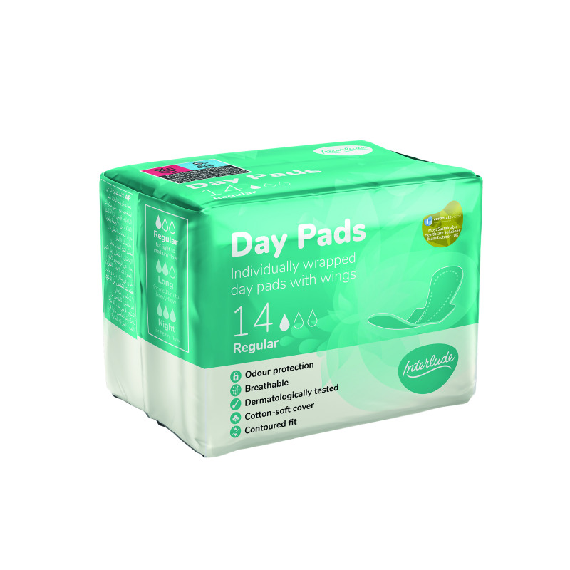 Interlude period care provides high performance, effective protection at exceptional value. In line with the leading brands, we have developed Interlude with an uncompromising commitment to ultimate protection, security and comfort. Ultra pads have a cotton-soft cover for maximum comfort. These breathable pads, with odour protection are specially designed to be thicker with a contoured fit for use any time. Individually wrapped. Dermatologically tested. 14 pads per packet. 12 packs supplied.