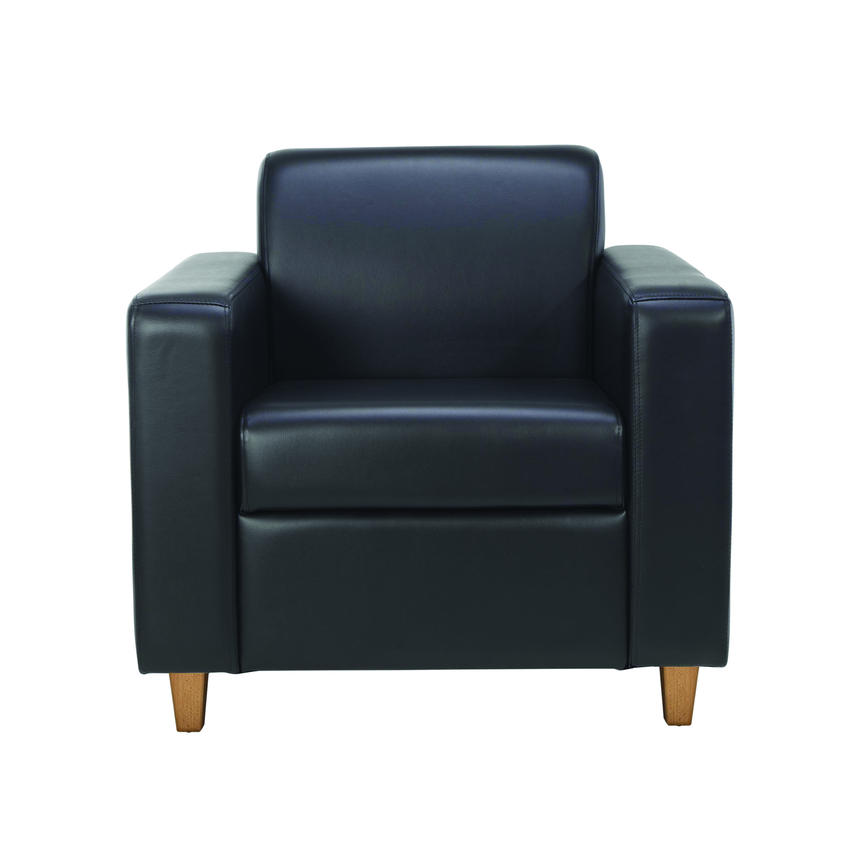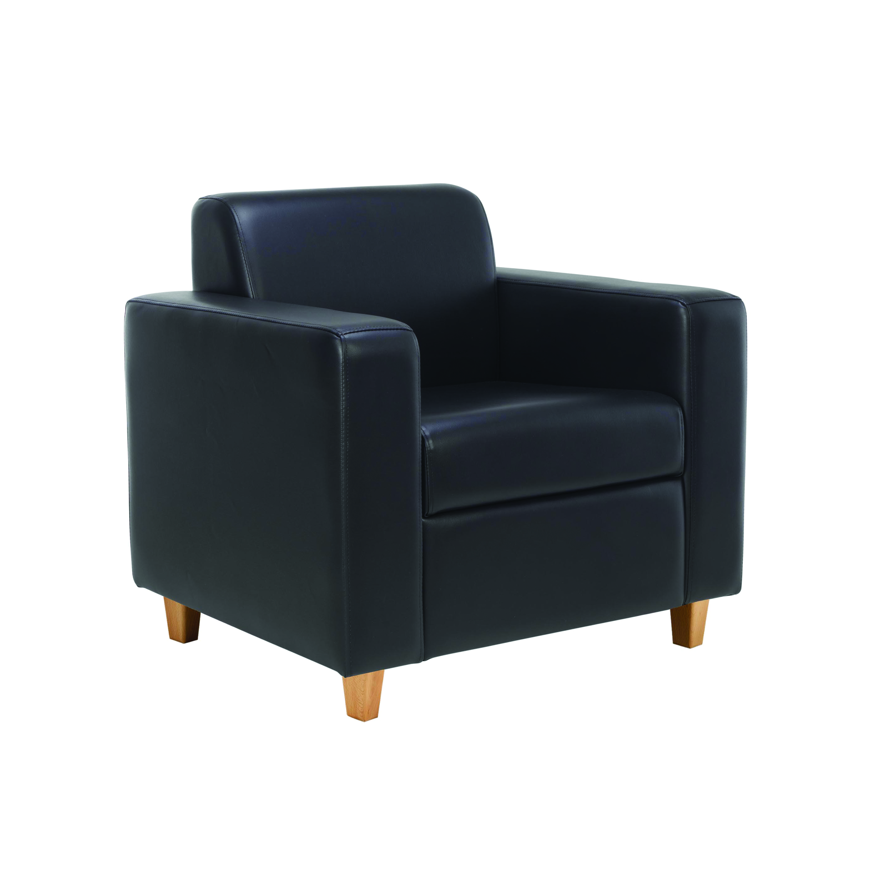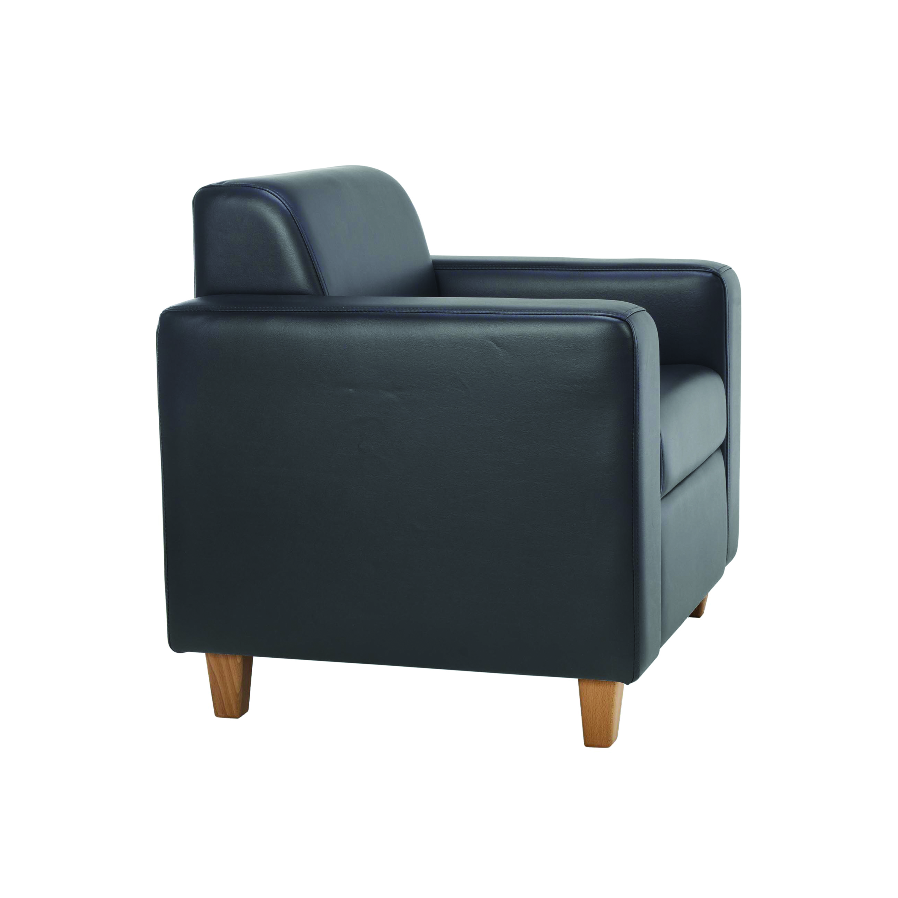 Jemini Iceberg is a modern leather-faced armchair with wooden feet. The armchair is suitable for reception, breakouts areas.
