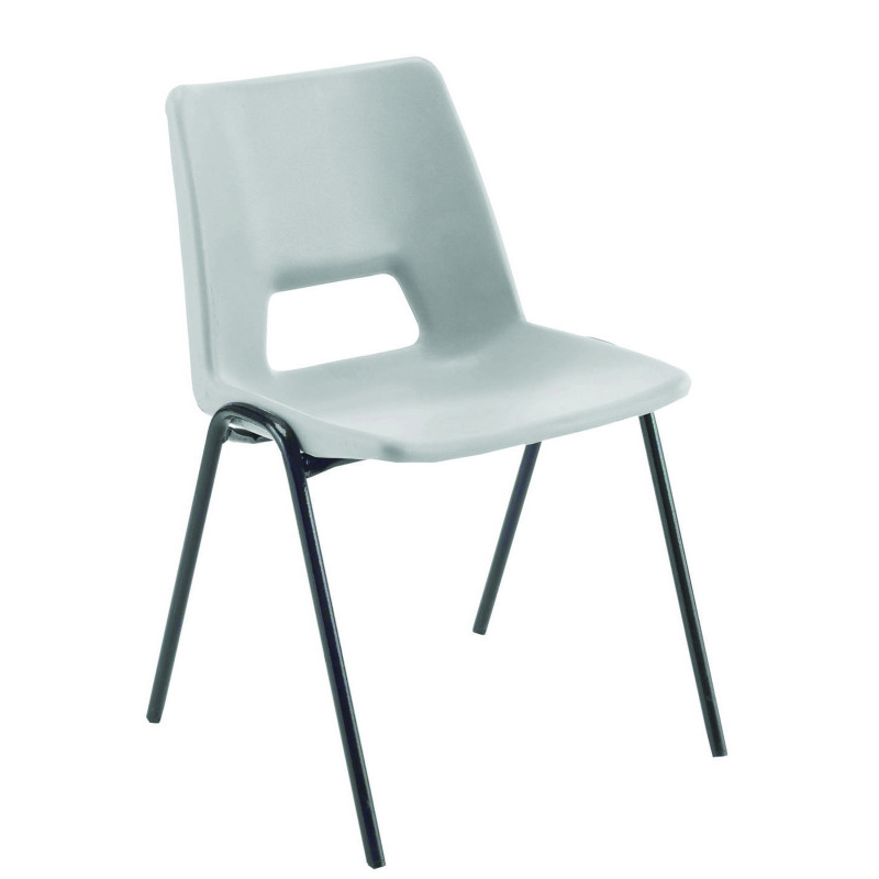 Perfect as a high volume seating solution, this Jemini polypropylene chair stacks up to 20 high for space saving storage. The moulded one piece polypropylene seat and back provides comfort and support, while the black epoxy coated 19mm diameter steel frame offers stability. Ideal for canteens, schools, meetings, events and more, these chairs are suitable for both internal and external use. This pack contains 1 grey chair.