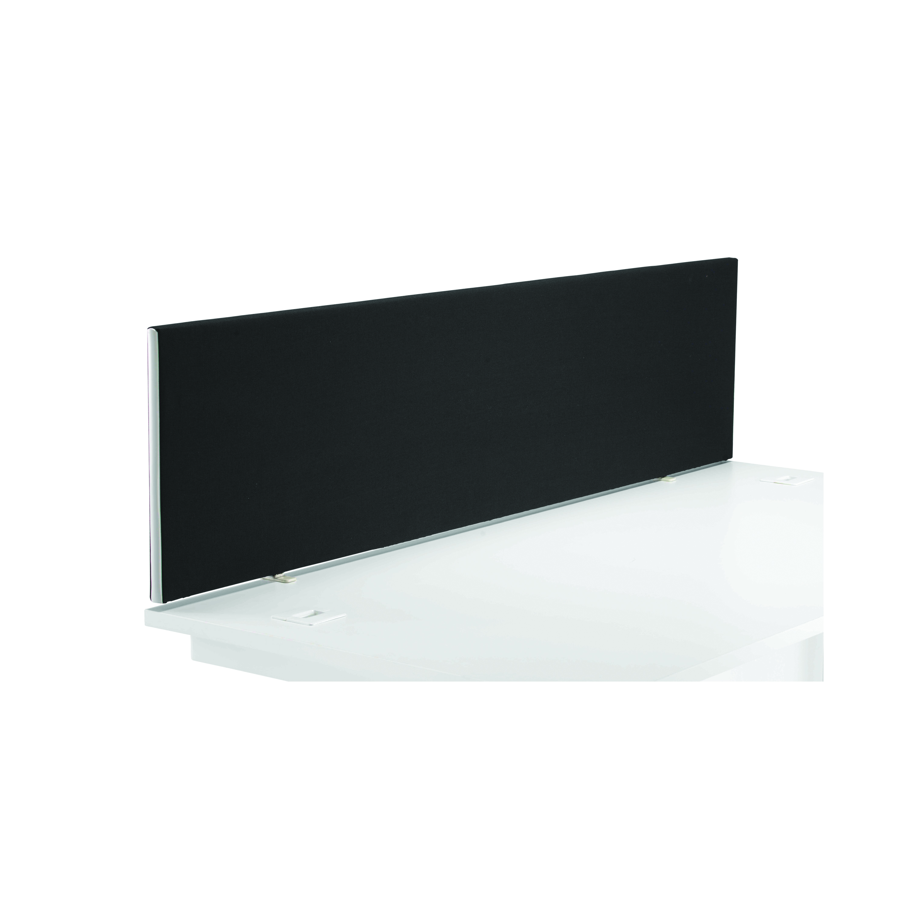 Provide privacy and reduce noise levels between desks with this Jemini Mounted Desk Screen. In a simple black, the screen is upholstered with Elfin flame retardant fabric with a protective up VA edge trim. This screen measures W1800 x D28 x H400mm and comes with a pair of standard desk clamps.