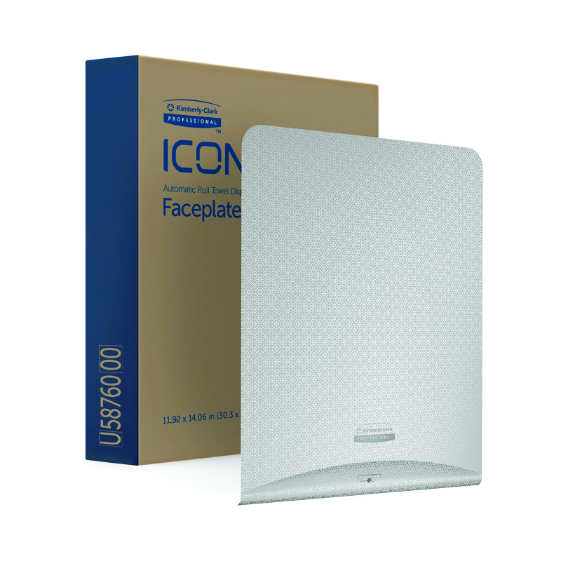 The Kimberly-Clark Professional ICON dispensing system is the newest industry-leading innovation, delivering confidence by design. Featuring first-of-a-kind versatility, the ICON dispenser effortlessly enhances the look of the washroom with an exclusive line of interchangeable faceplates to help reimagine the washroom, this faceplate is a silver mosaic design, for a sleek, elegant look. A quick and easy faceplate swap from the original to the silver mosaic design. Designed to take minimal effort, changing the faceplate is literally a snap in a few steps.