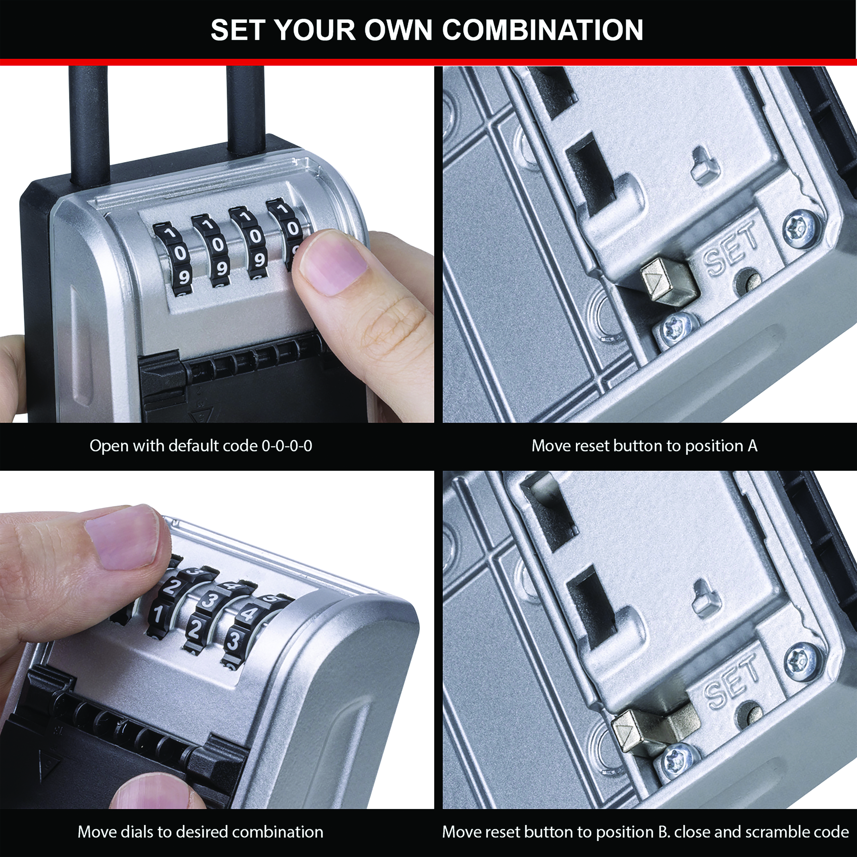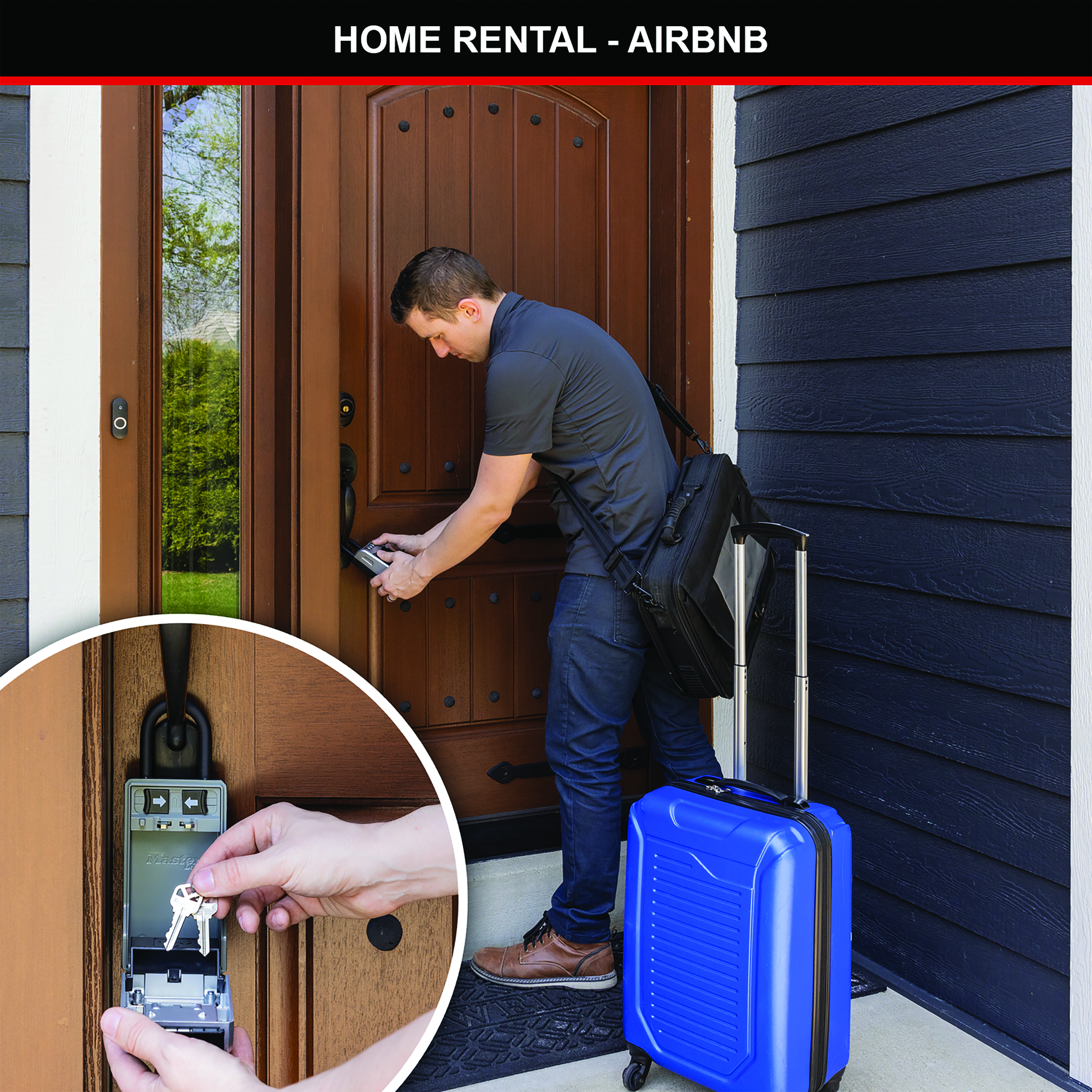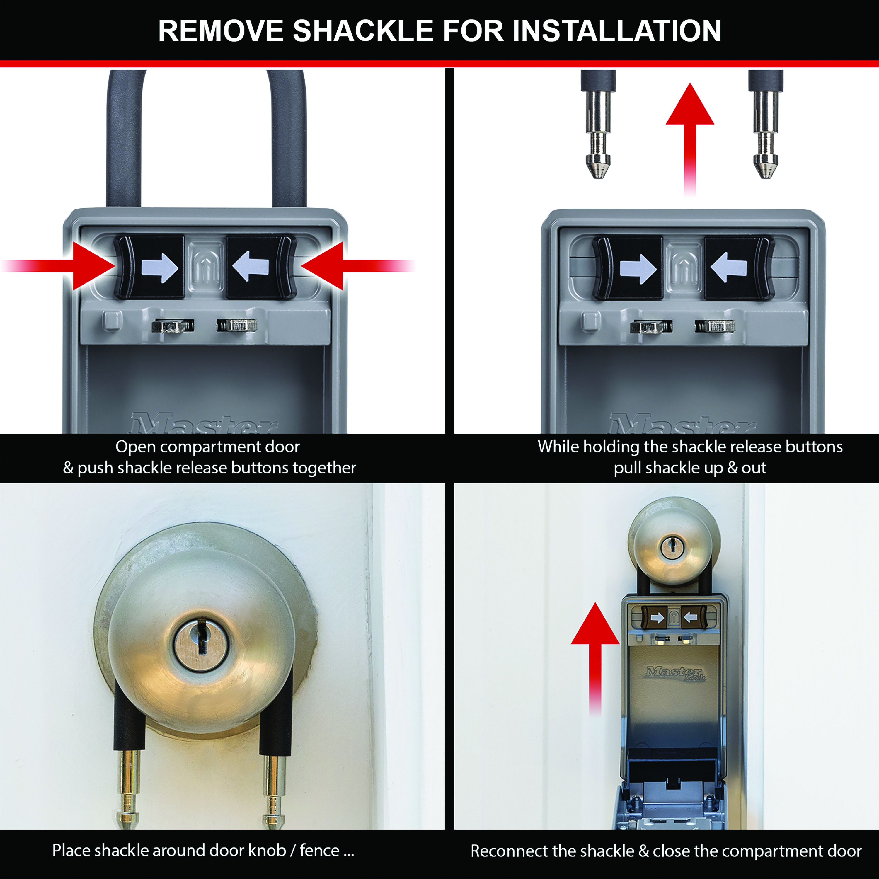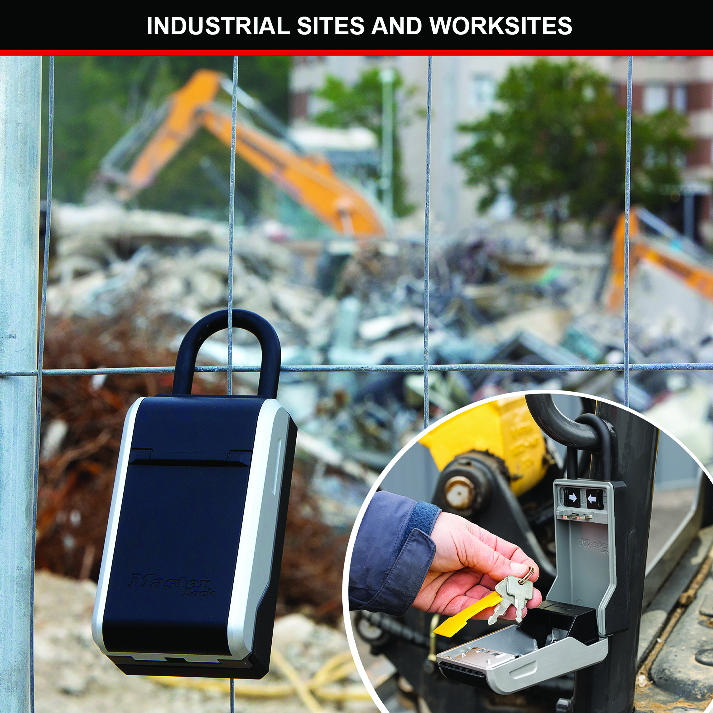 The New Innovative Select Access 5480EURD from Master Lock is the perfect solution to share your keys and access cards with people you trust. This new design features a removable shackle to attach to fixed points and is perfect for portable security or if temporary access is needed across multiple properties. The 5480EURD is a great key safe to share keys with care takers, home workers, family or roommates. It is a great solution for AirBNB, home rental, collective ownership as there is no need to fix it on the wall and it can be attached anywhere such as: door handles, fences, gates, rails and more. Featuring a solid construction with a metal body to resist against different type of attacks. With an 87 x 61 x 43mm storage capacity, it is up to 2.5 times bigger than a standard key safe, storing up to 10 keys (house, car keys and access cards). The 4-digit combination offers up to 10,000 possible codes, giving keyless convenience and increased security. Featuring large, spaced dials which are easy to turn and read, the key lock box offers side handles which pull to open, making it easy to open with just one hand. Complete with a protective cover which protects the combination from weather, dirt and grime, the 5480EURD has a Limited Lifetime Warranty, providing peace of mind from a brand you can trust.