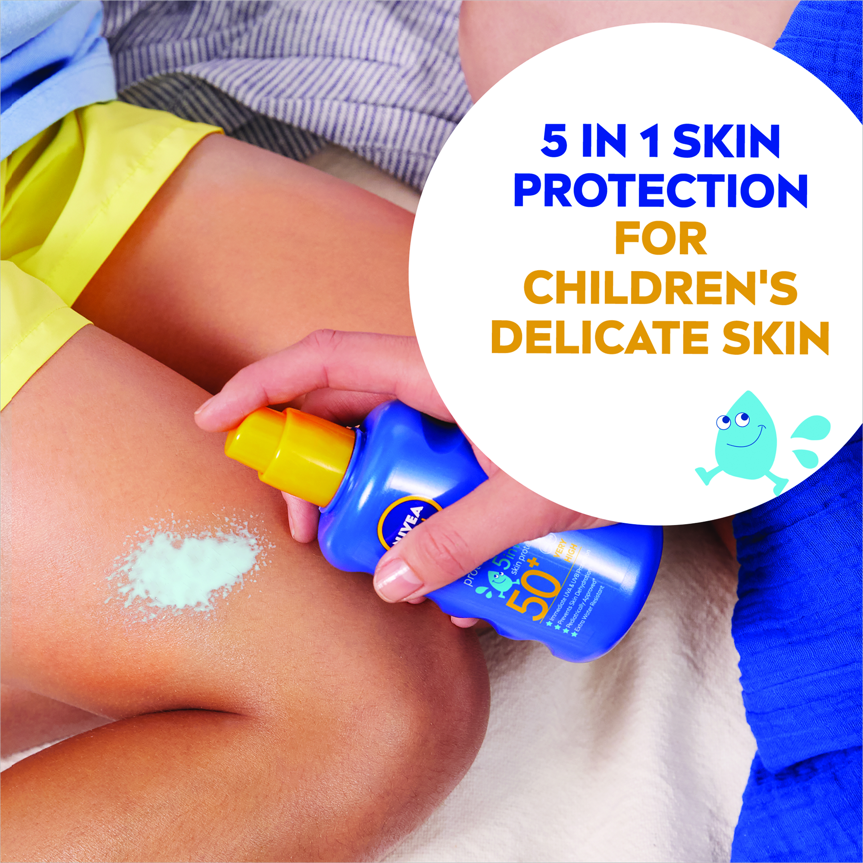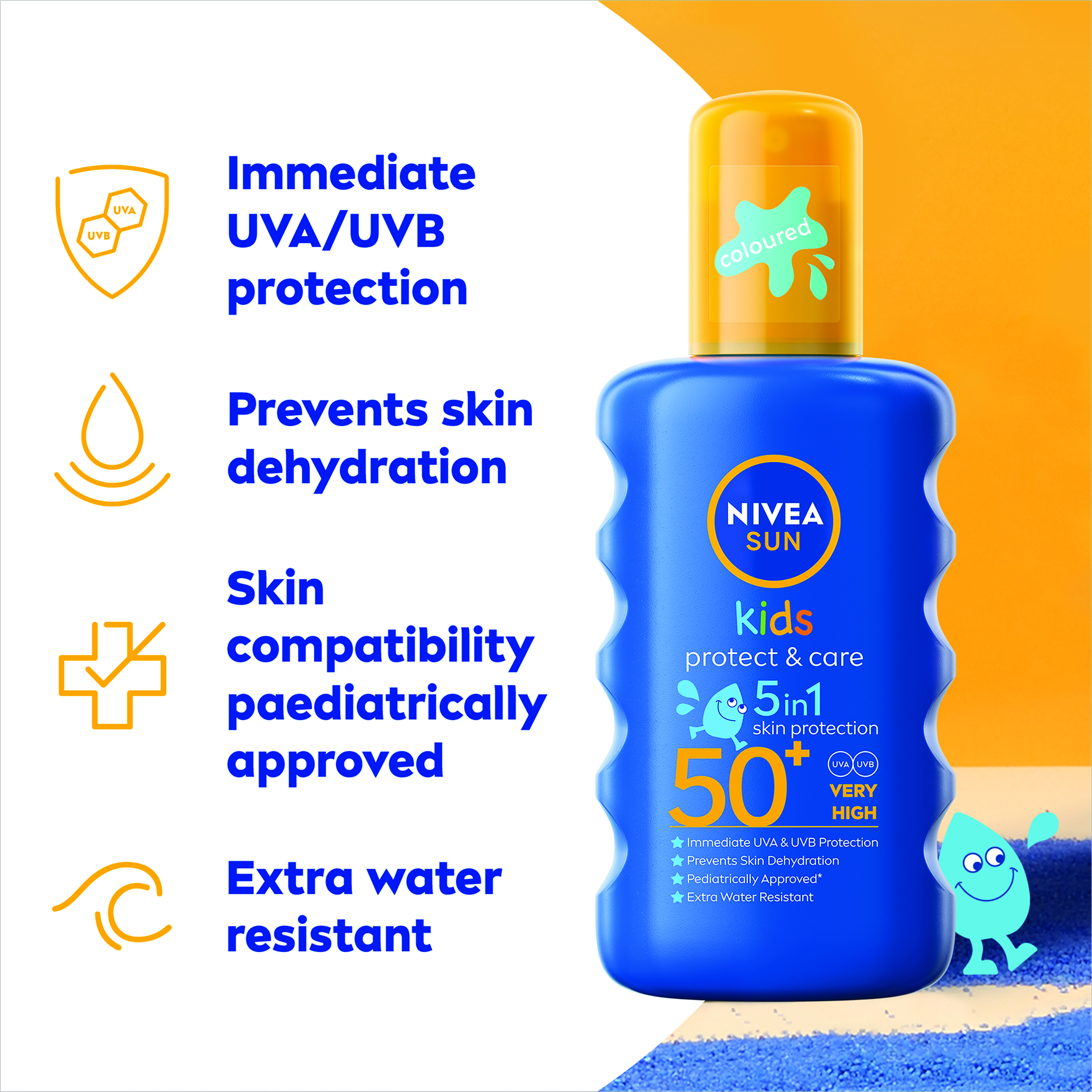 Nivea Sun Kids Protect and Care Coloured Sun Cream Lotion Spray 5in1 SPF 50+ 200ml C009317