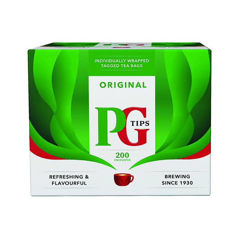 These PG Tips tea bags in individually wrapped envelopes offer the hygienic solution and reassurance for consumers in relation to the spread of germs. Giving a fresh taste every time, each tagged tea bag provides just the right amount for a single cup. Supplied in a box of 200 individually wrapped envelopes, they are ideal for caterers and shared staff kitchens.