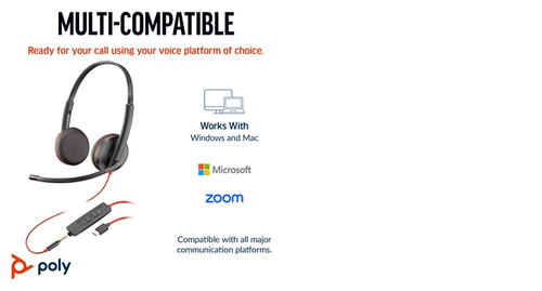Poly Blackwire 3225 Stereo UC USB-C/A +3.5mm Headset 8X229AA
