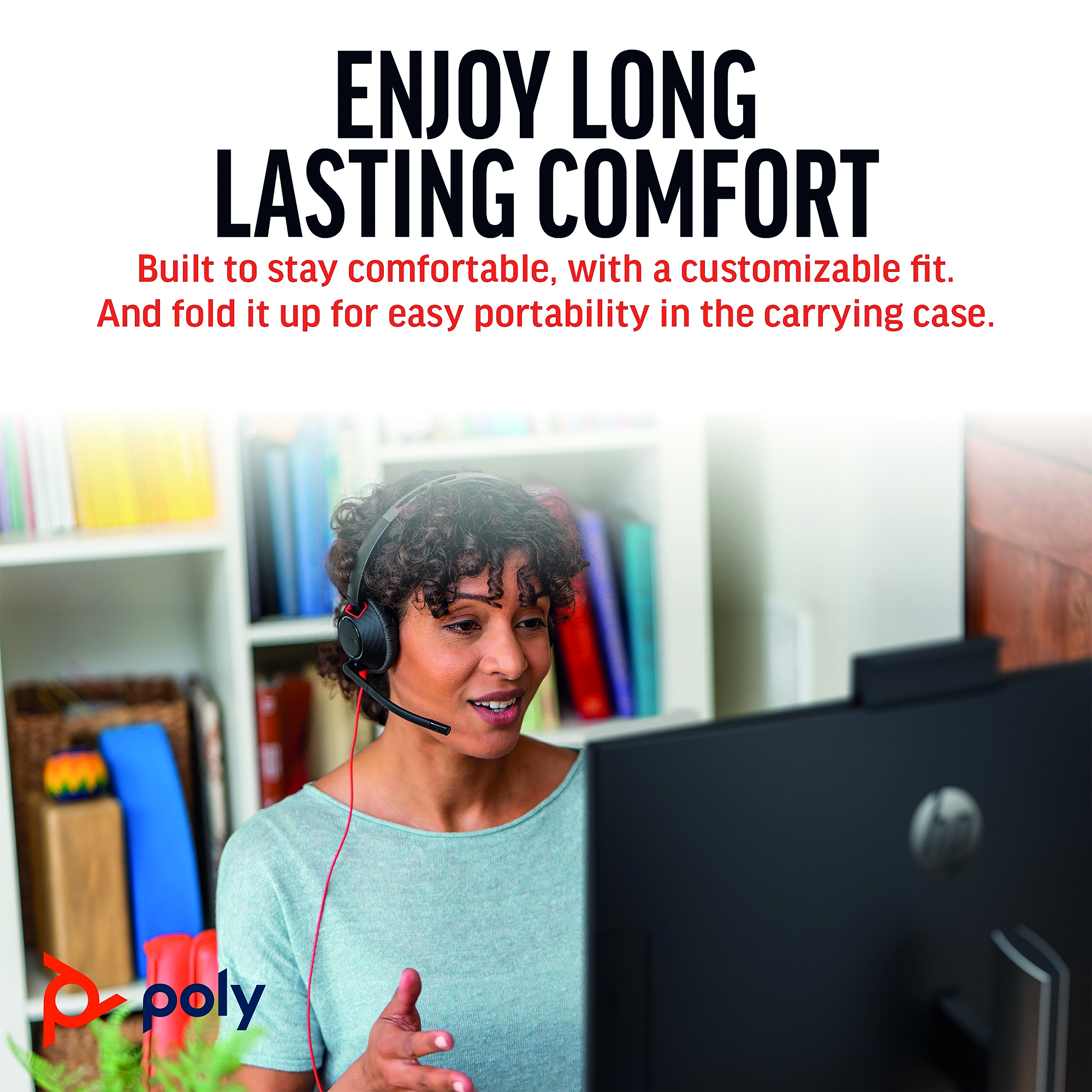 Wear it well. The Blackwire 5200 Series fits your busy workday. Ergonomically designed for long lasting comfort. And with the easy-to-use connectivity you can work on a variety of devices throughout the day.