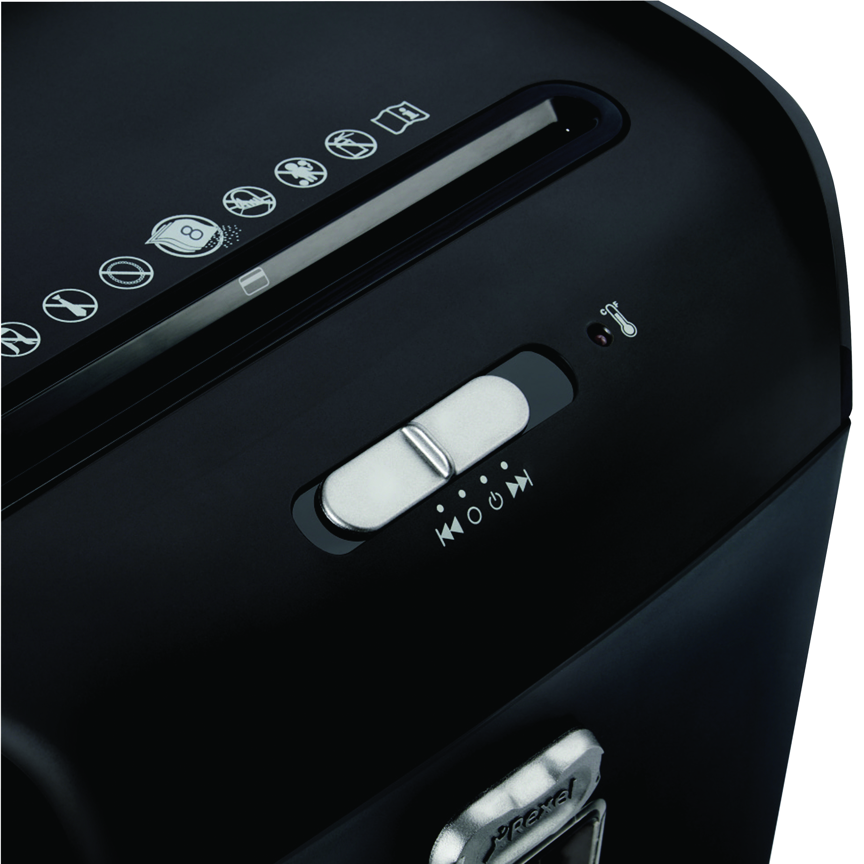 The Promax REX823 shreds 8 sheets at a time into secure P4 (4*40mm) cross cut pieces.