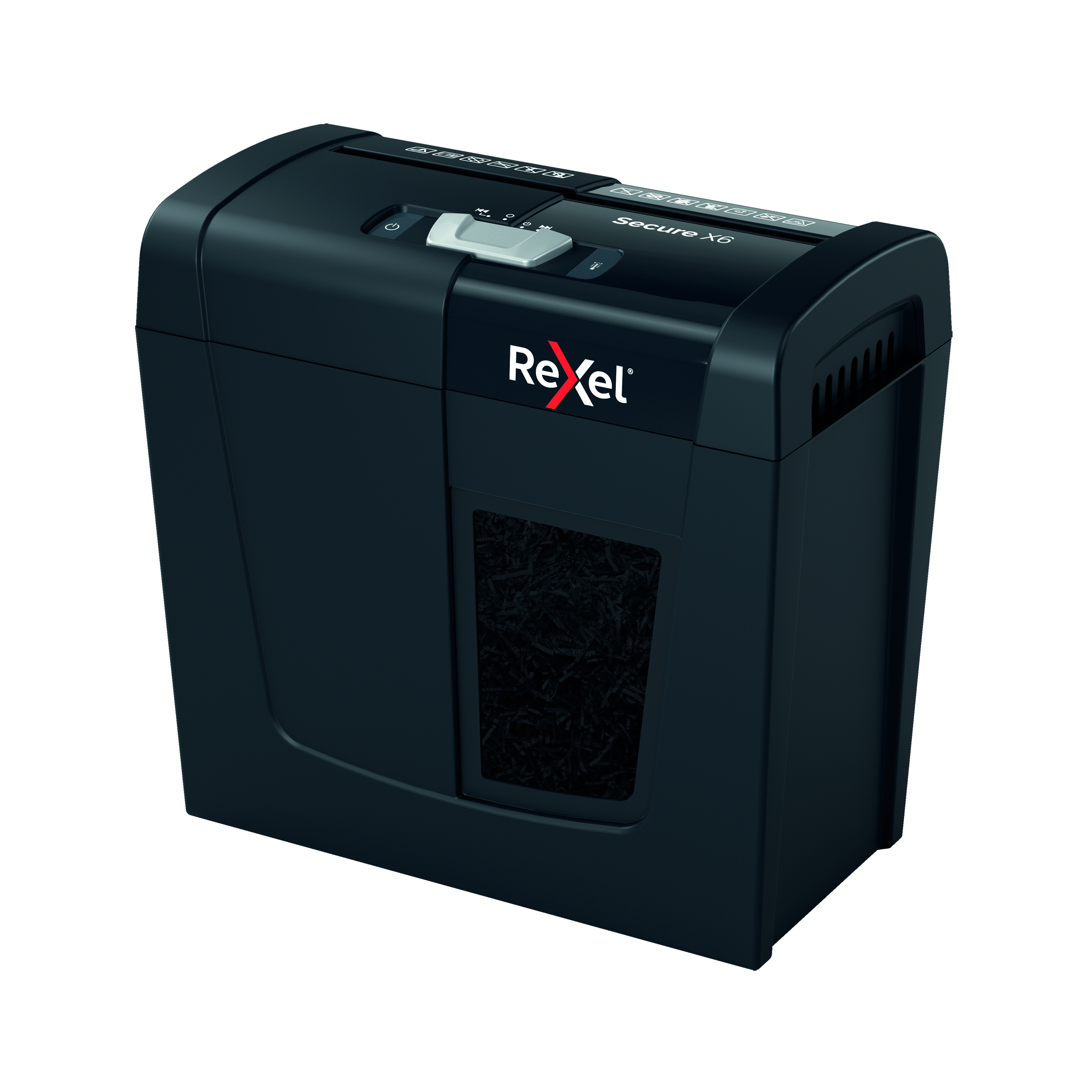 Rexel Secure X6 shredder shreds up to 6 sheets of A4 paper (80gsm) in one go through the manual feed slot into P-4 (4x40mm) cross-cut pieces. This cross-cut shredder is small and compact making it a perfect home shredder for use in a home office; it is also an ideal personal office shredder that fits conveniently under a desk. Designed for light to moderate use with a 10L bin capacity.
