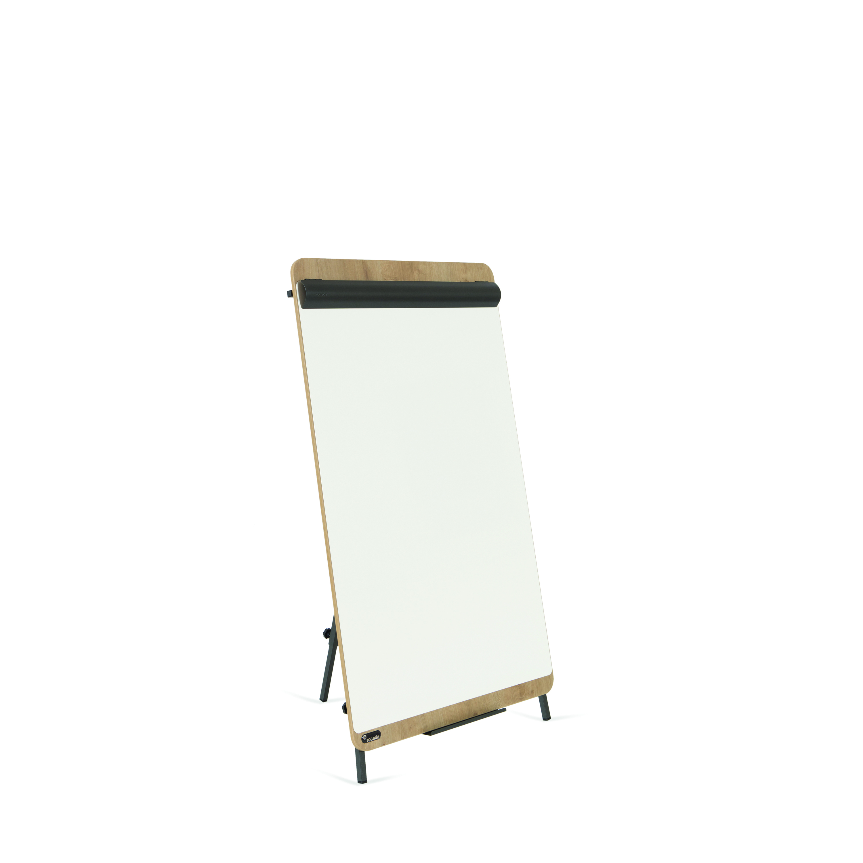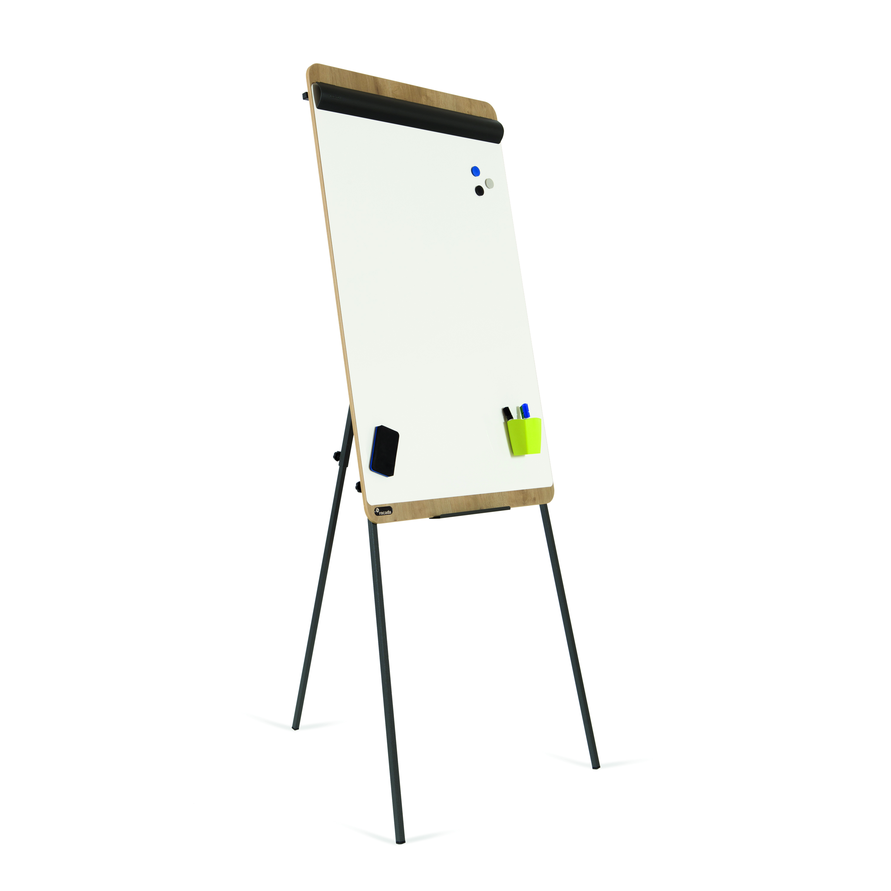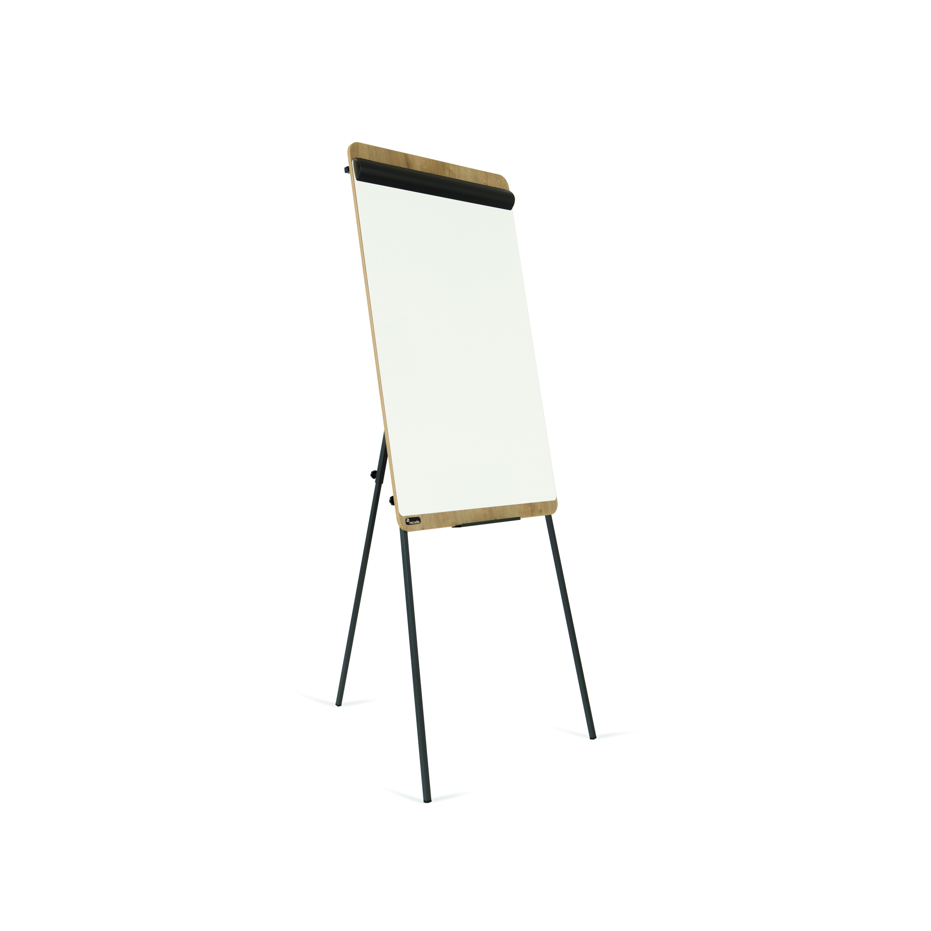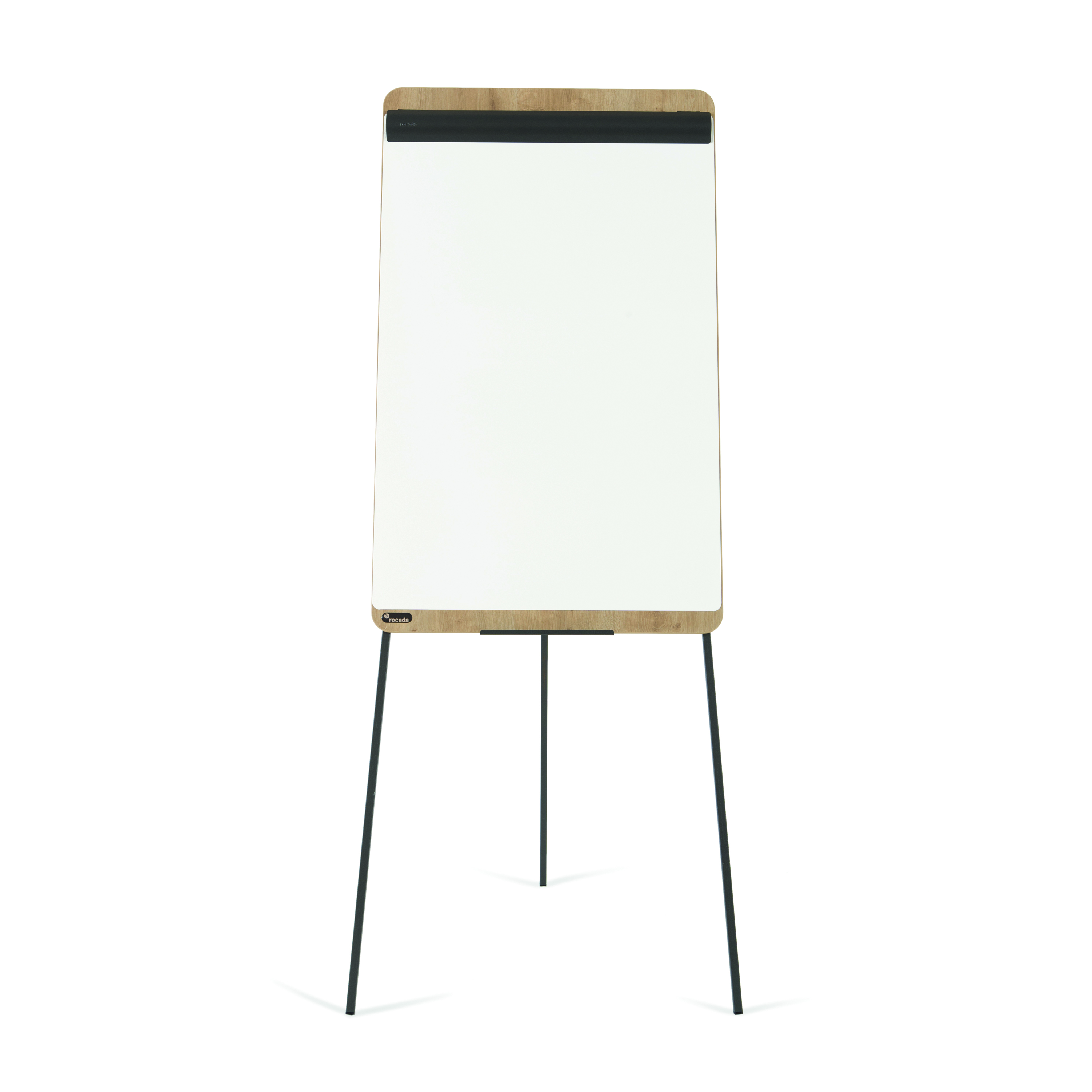 The Rocada magnetic, tripod flipchart from the Natural range has excellent stability, featuring a structure combining steel and wood-finished melamine. This hard wearing, dry whiteboard surface offers added presentation options and can be folded down for easy storage.