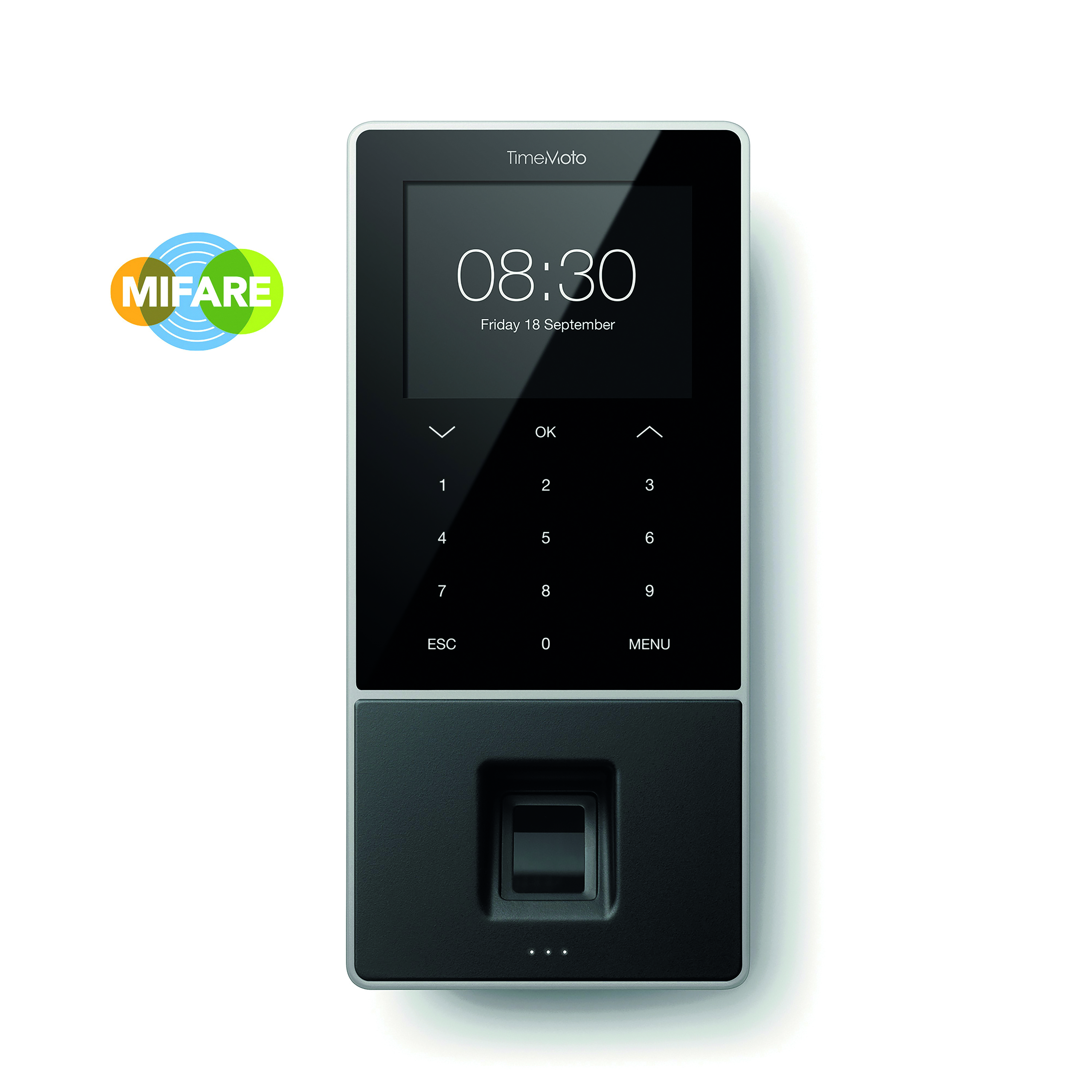 The Safescan TimeMoto TM-818 SC time clock system is designed to accommodate the time attendance and workforce management requirements for companies with up to 2,000 employees. With built-in MIFARE and RFID proximity reader and 500 dpi finger print sensor for instant authentication for up to 2,000 fingerprint templates. For efficient and reliable attendance tracking, easy clocking in and out for employees. Clocking in/out with MIFARE and RFID badge, Key fob or PIN. Combine with PC software for single PC use or TimeMoto Cloud. Choose TimeMoto Cloud for instant synchronization from any location at any time. With 3.5 inch TFT display, 1.2 GHz dual core processor and built-in MIFARE and RFID reader, it ensures reliable, instant authentication. 100,000 logs memory capacity. Integrated push technology sends clocking data directly to the TimeMoto Cloud.