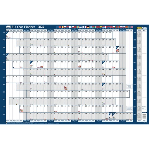 • See all your events and activities from January to December, at a glance, on this EU year planner, ideal for anyone working in a pan-European environment. Includes all the key features of the Sasco Original Year Wall Planner plus all European public holidays
