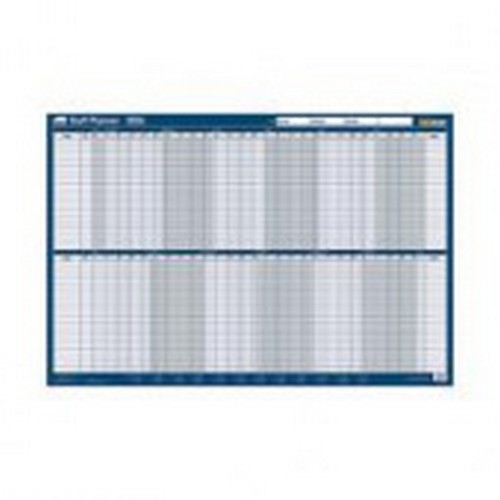 - Runs January to December, displaying the complete year by week and includes daily columns with index space for up to 40 staff or projects