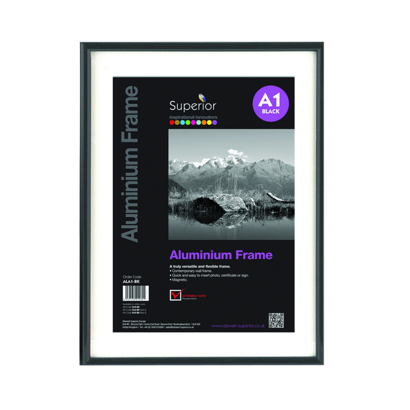 Classic and elegant black aluminium frame that can either be hung portrait or landscape and is ideal for displaying prints, photos, posters, certificates, etc.