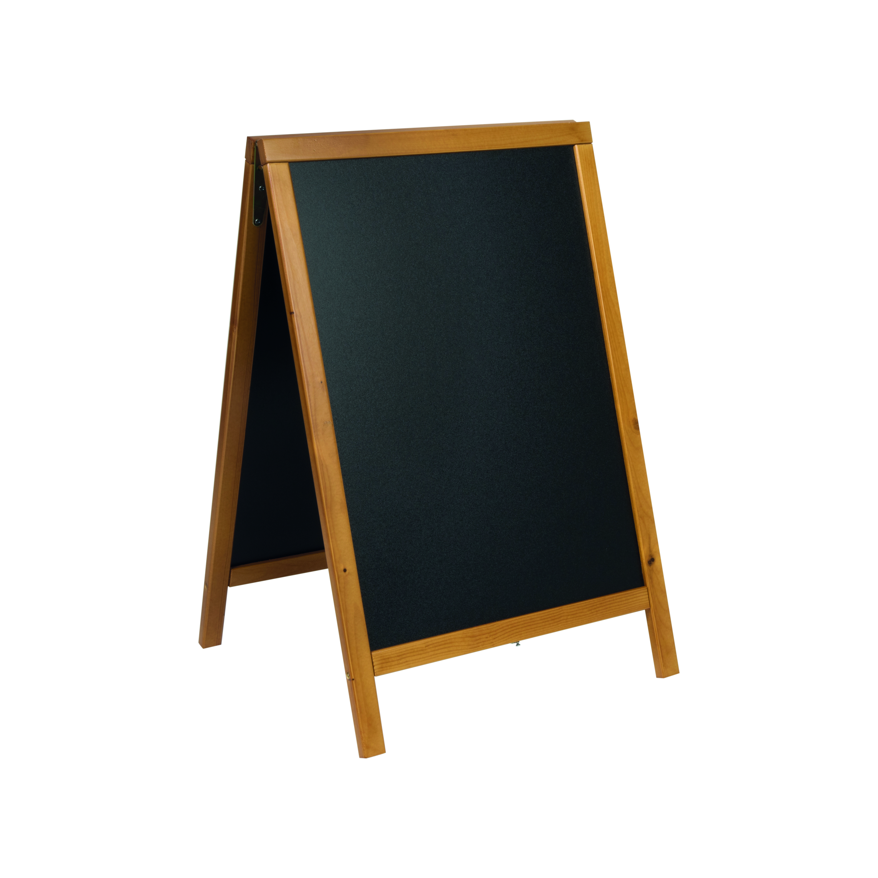 Securit Woody pavement a-board is a smart choice within cafes, bars, restaurants and shops. This small all-weather pavement board with a scratch resistant and UV-proof writing surface is built with a solid double-lacquered pinewood frame in teak and finished with stainless steel hardware. Designed to withstand 25 km/h winds.