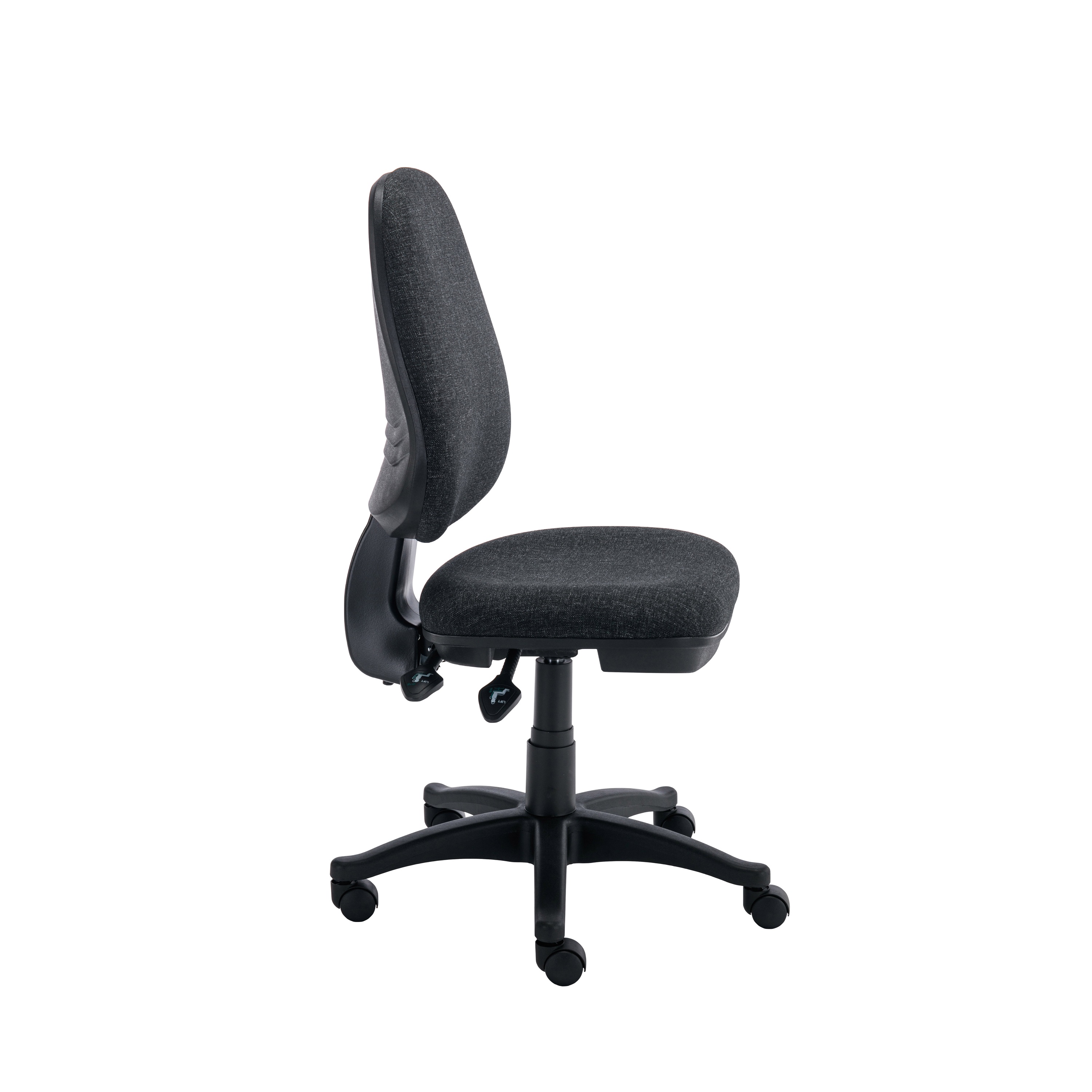 2 Lever Office Chair. The deep cushioned seat will keep you comfortable all day long, while the moulded backrest will provide you with the necessary support for your back and neck. This office chair is upholstered with a hard-wearing fabric, ensuring that it is durable and long-lasting. Invest in this 2 Lever operator chair today and experience the benefits of a comfortable and supportive office chair.