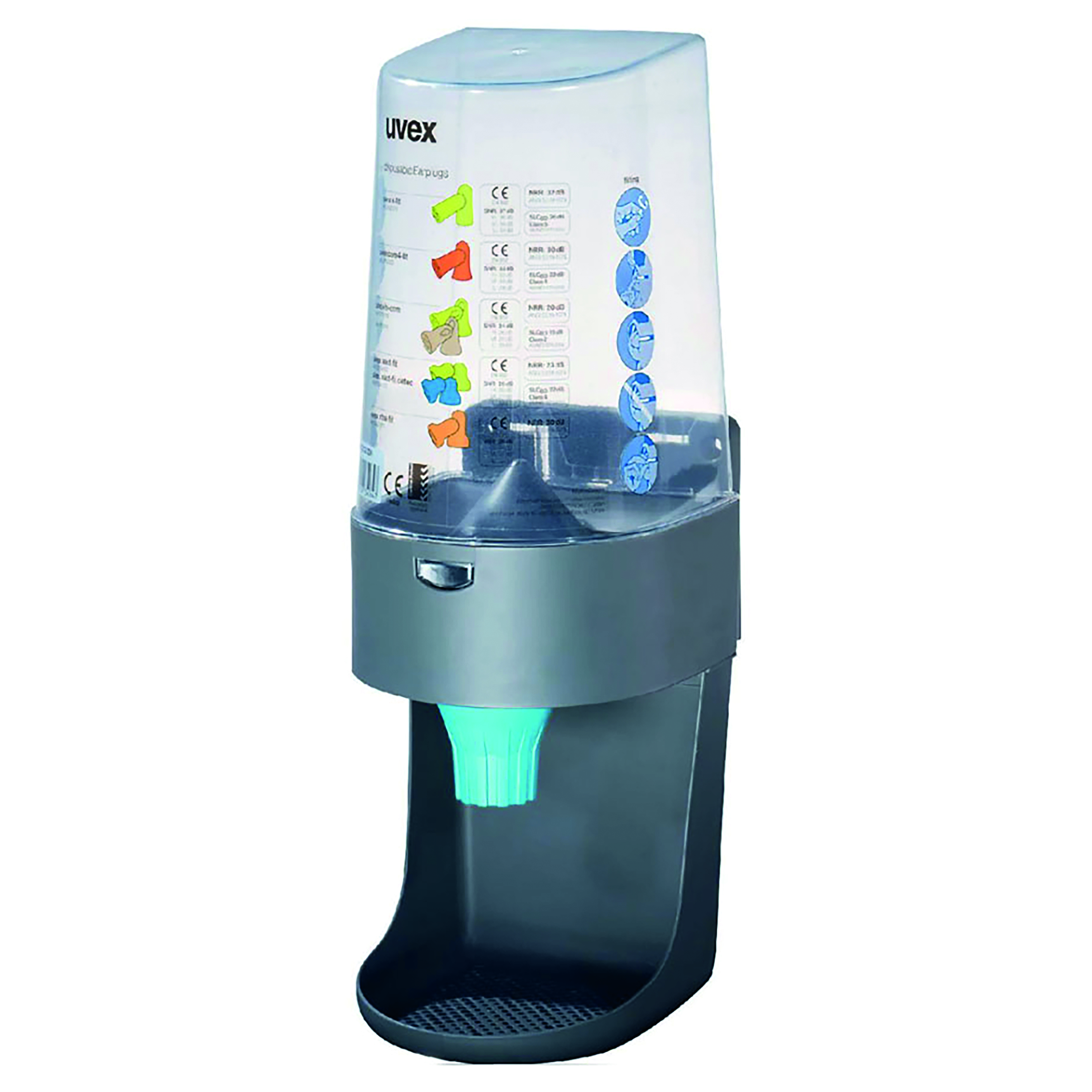 The uvex ”one 2 click” earplug dispenser is a highly visible, robust wall mounted unit that can be situated at entrances to mandatory hearing protection areas. The ear plugs are dispensed with a simple twist mechanism that does away with the need for individual packaging, helping to reduce waste.. Easy to use dispenser puts hearing protection where it’s needed. Easy installation and a controlled release mechanism ensures the correct number of plugs are dispensed. The audible one2click system prevents over supply thus reducing waste and costs. The transparent design makes it easy to monitor the number of earplugs remaining. Located in convenient locations, the dispenser has sufficient capacity to supply large production areas with hearing protection at a favourable priceDispenser can be filled with following disposable plugs:UV2112022 uvex x-fit 300 pairs loose in refill boxUV2112023 uvex com4-fit 300 pairs loose in refill boxUV2112061 uvex xtra-fit 250 pairs loose in refill boxUV2112.118 uvex hi-com lime 300 pairs loose in refill boxUV112119 uvex hi-com beige 300 pairs loose in refill boxUV2124003 uvex xact-fit 400 pairs loose in refill boxUV2124013 uvex xact-fit detec 400 pairs loose in refill box