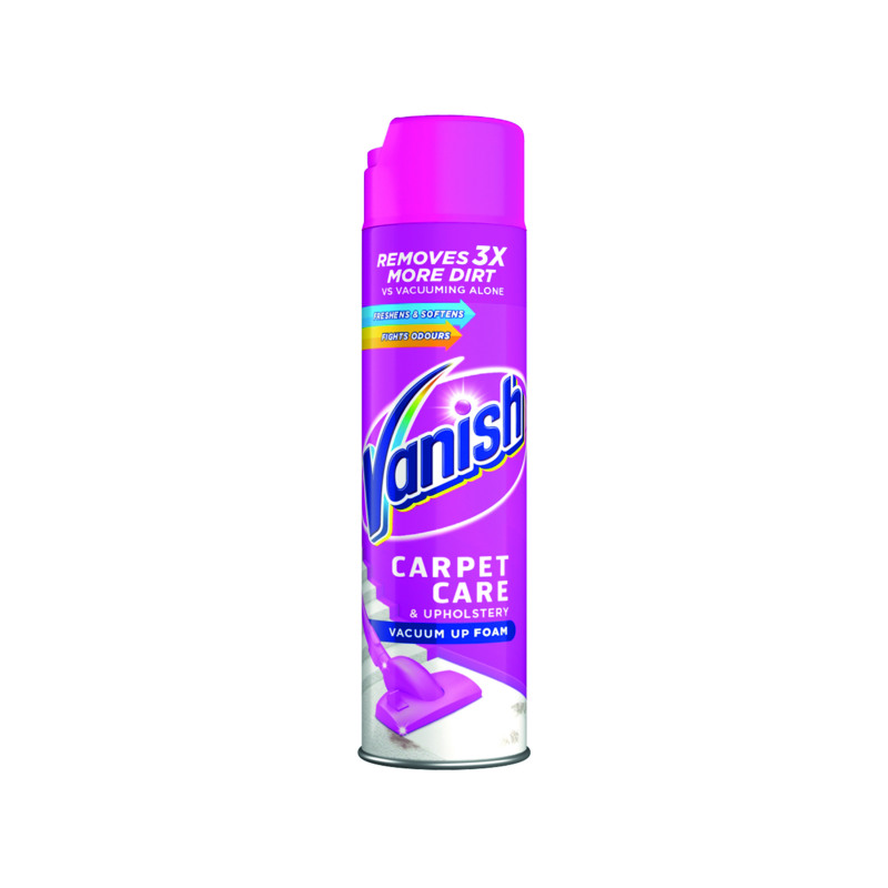 Suitable for cleaning carpets and upholstery, this Vanish foam cleaner will soften, freshen and clean. Designed to combat carpet dirt build up, particularly in high traffic areas, this cleaner will keep hallways, stairs, rugs and upholstery clean, removing three times more dirt and pet hair. Simply spray, brush and vacuum.