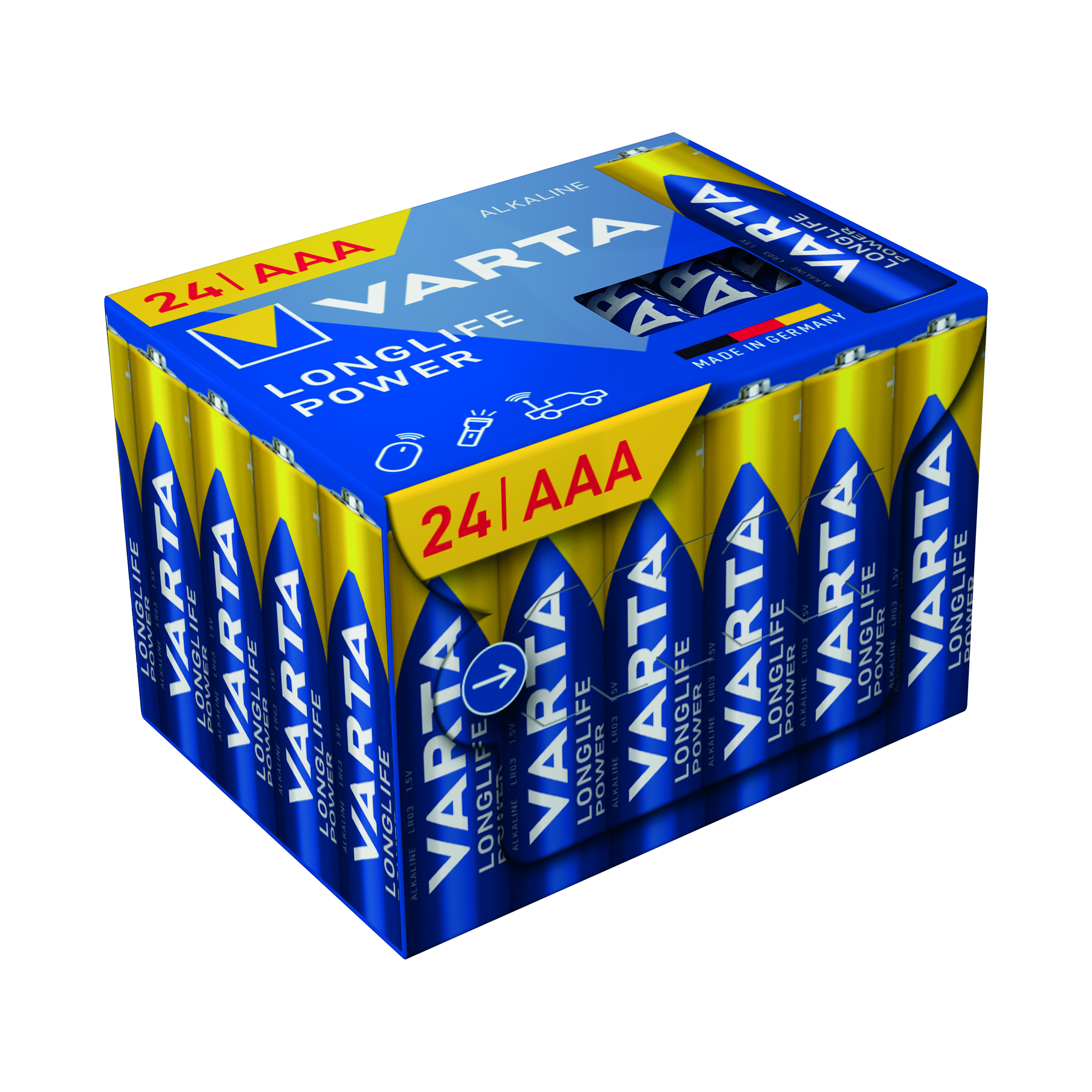 Varta Longlife Power is the most powerful of the Varta alkaline batteries. Developed especially for devices with high energy consumption. Stay independent with high performance battery power when using power hungry devices, such as remote controlled toys, computer equipment or LED flashlights.