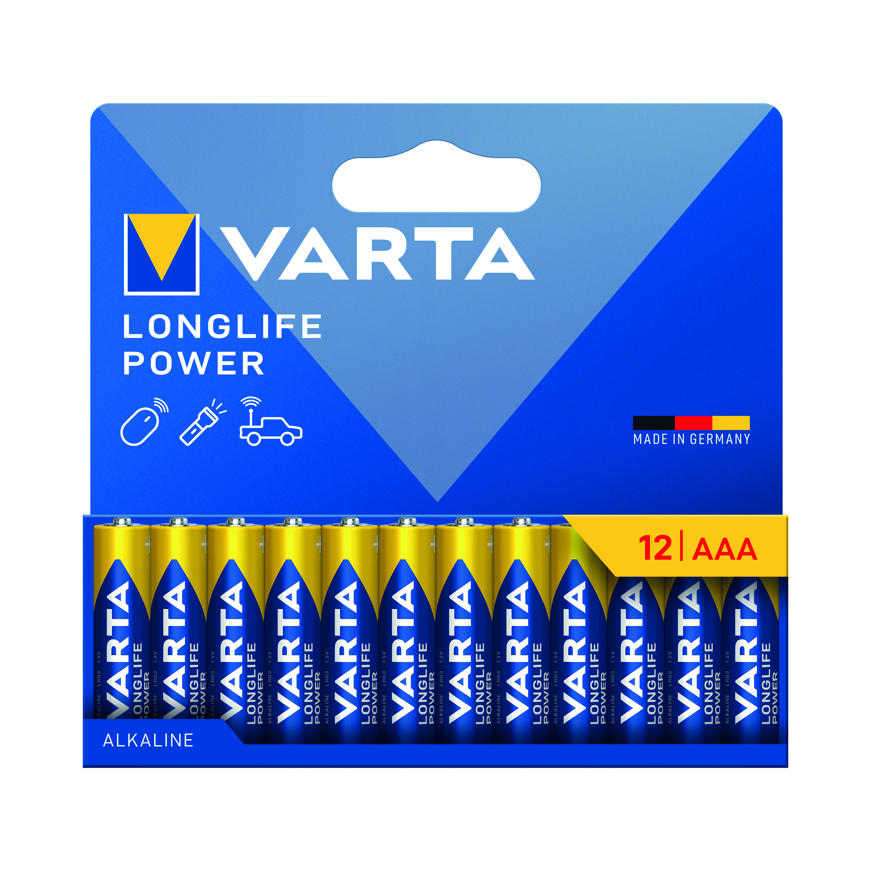 Varta Longlife Power is the most powerful of the Varta alkaline batteries. Developed especially for devices with high energy consumption. Stay independent with high performance battery power when using power hungry devices, such as remote controlled toys, computer equipment or LED flashlights.